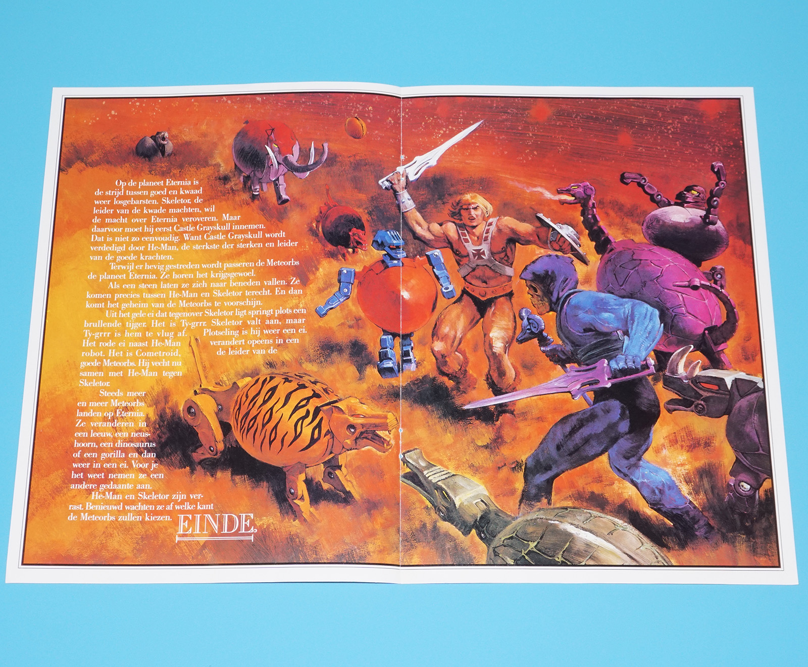 MOTU HE-MAN MASTERS OF THE UNIVERSE CATALOG FOLDER FOLDOUT ‘DE METEORBS’ 1986 MATTEL HOLLAND
