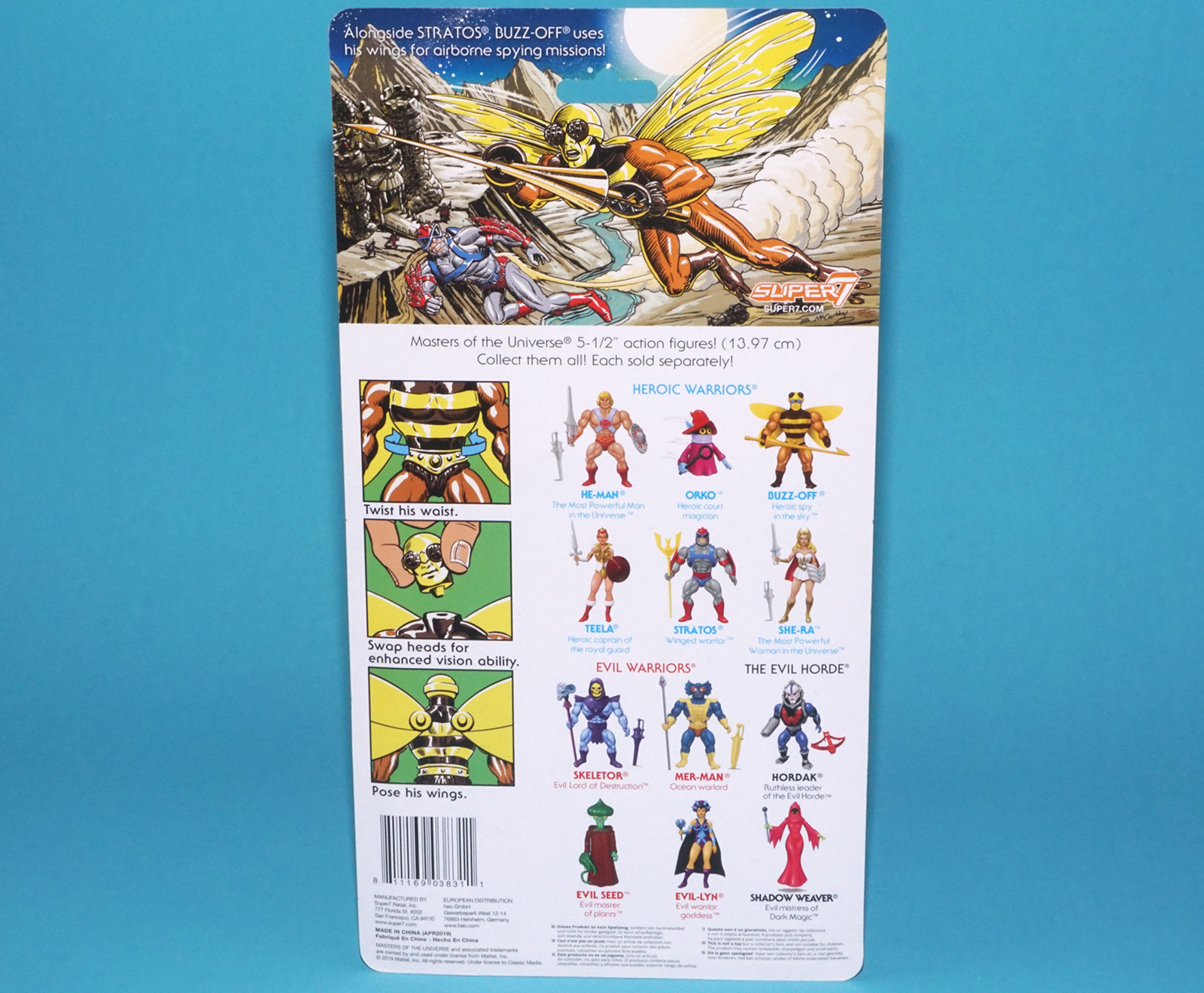 MOTU HE-MAN MASTERS OF THE UNIVERSE FILMATION BUZZ-OFF MOC MOSC 2019 SUPER7 MATTEL