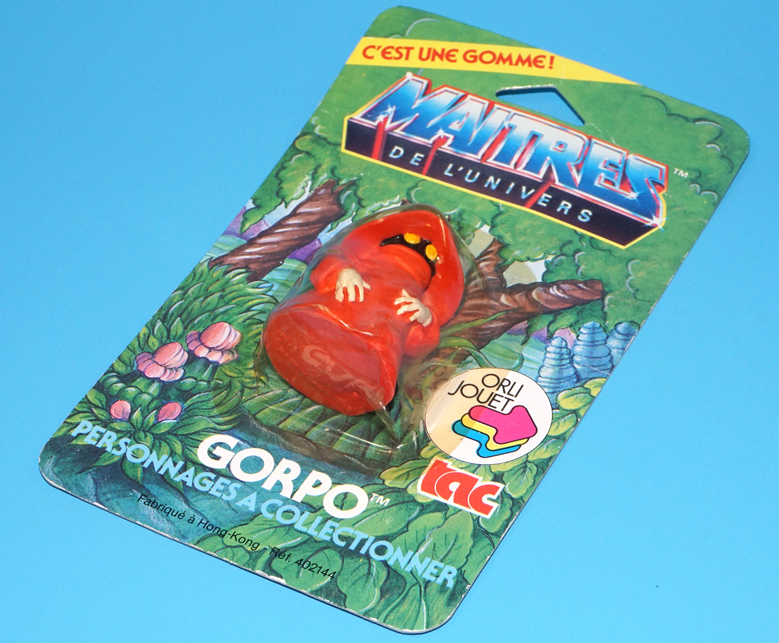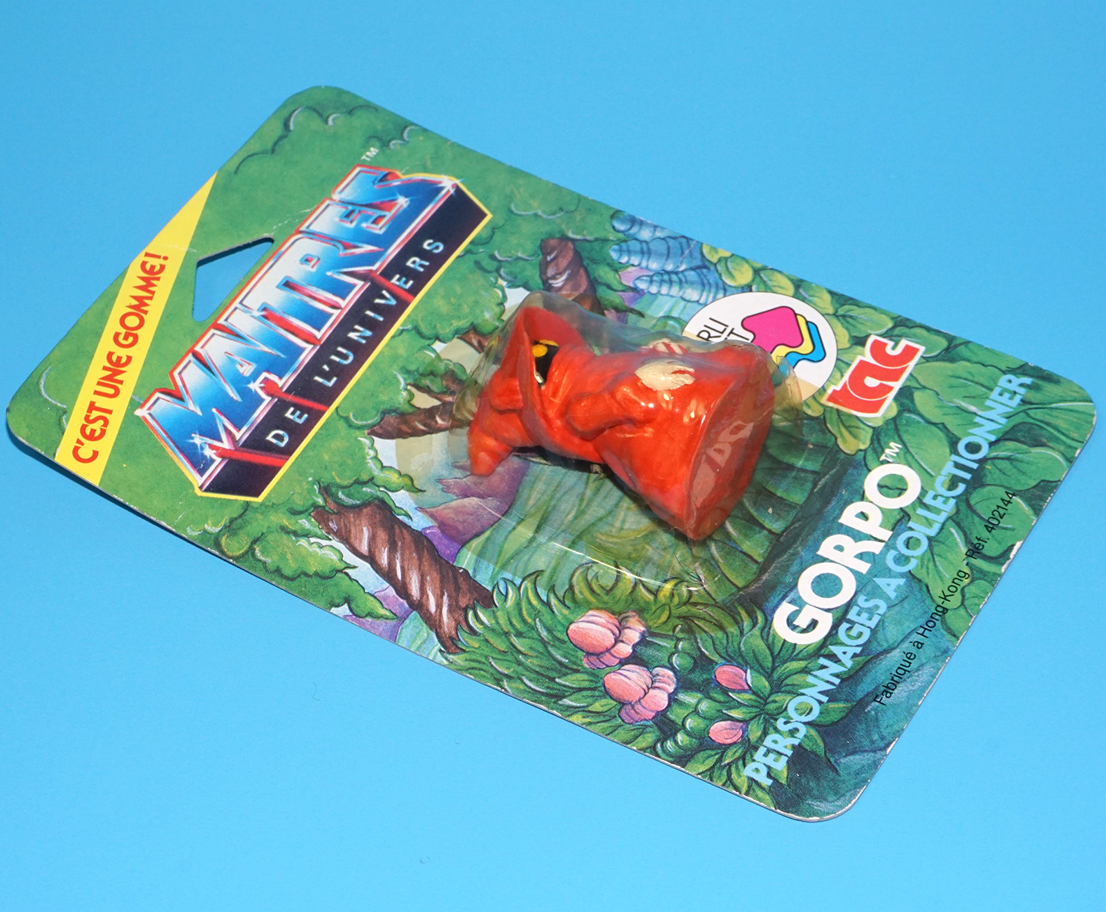 MOTU HE-MAN MASTERS OF THE UNIVERSE GOMME COLLECTIBLE ERASER GORPO ORKO MOC MOSC EURO CARD 1984 TAC FRANCE MATTEL READ