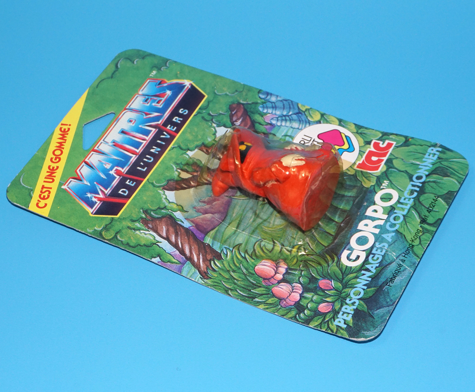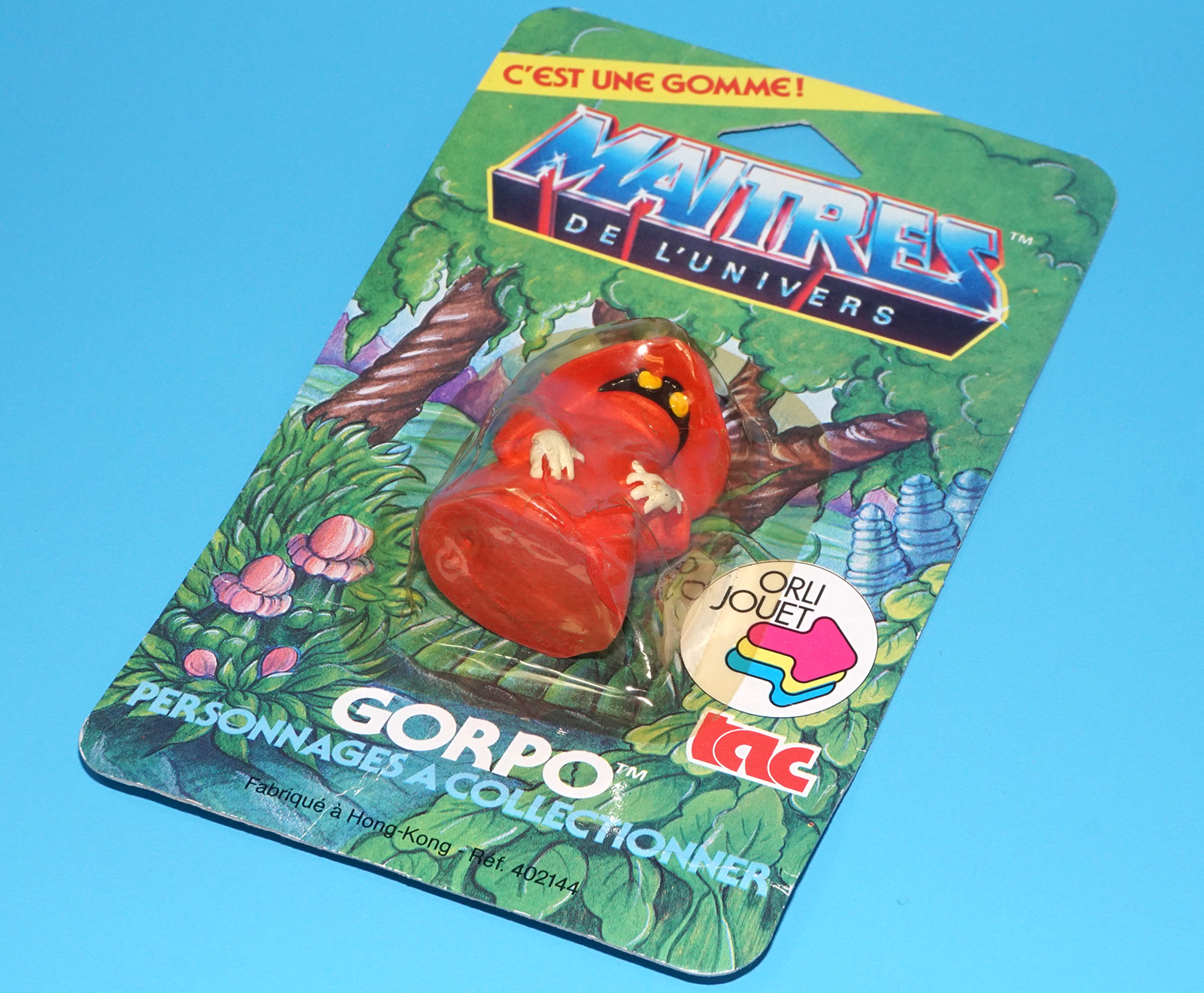 MOTU HE-MAN MASTERS OF THE UNIVERSE GOMME COLLECTIBLE ERASER GORPO ORKO MOC MOSC EURO CARD 1984 TAC FRANCE MATTEL READ