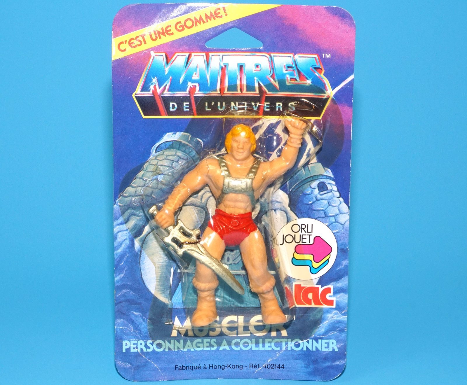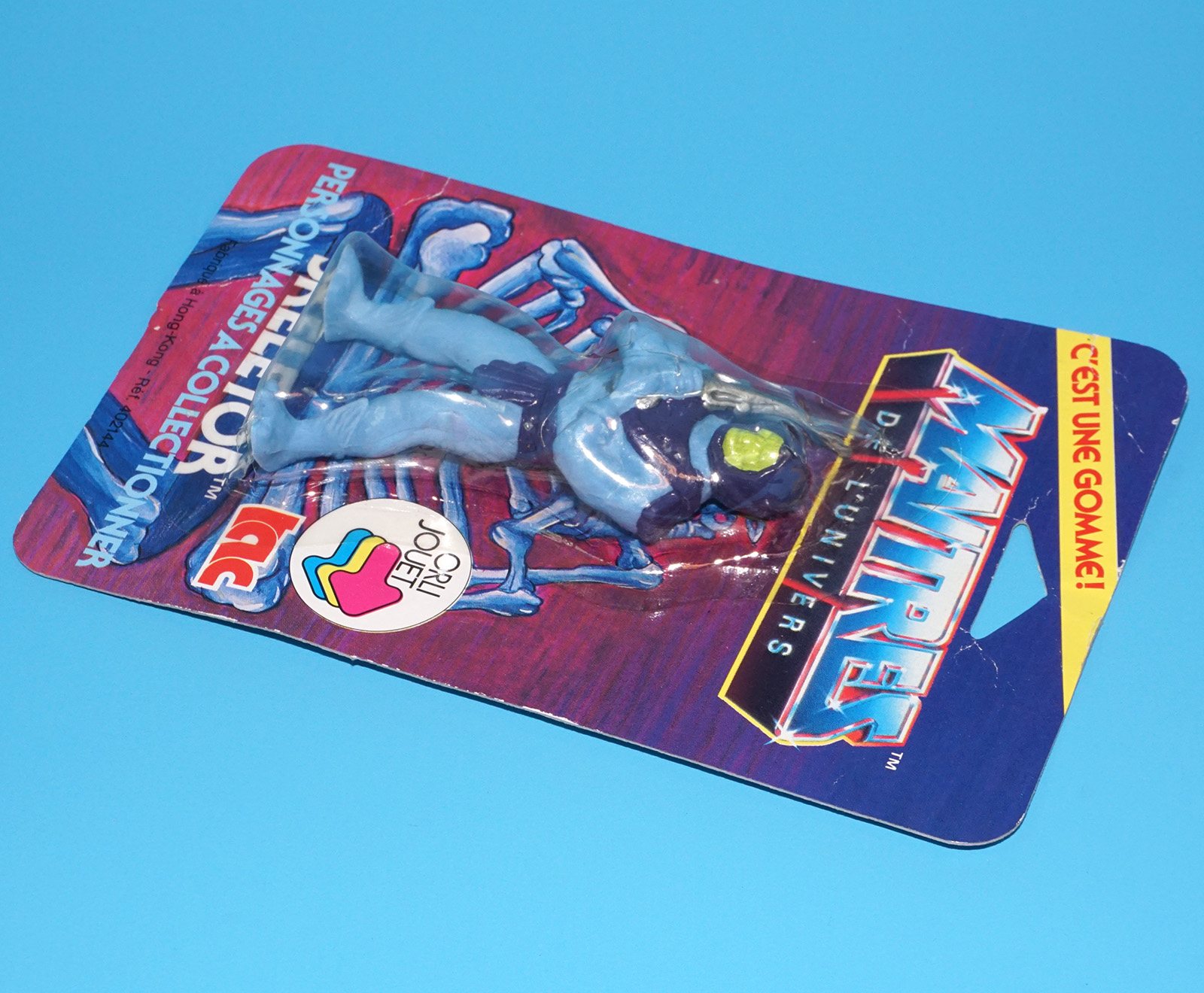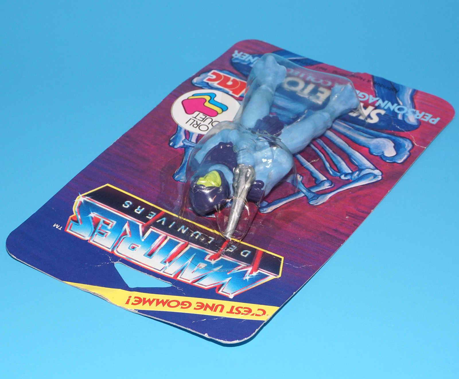 MOTU HE-MAN MASTERS OF THE UNIVERSE GOMME COLLECTIBLE ERASER SKELETOR MOC MOSC EURO CARD 1984 TAC FRANCE MATTEL READ