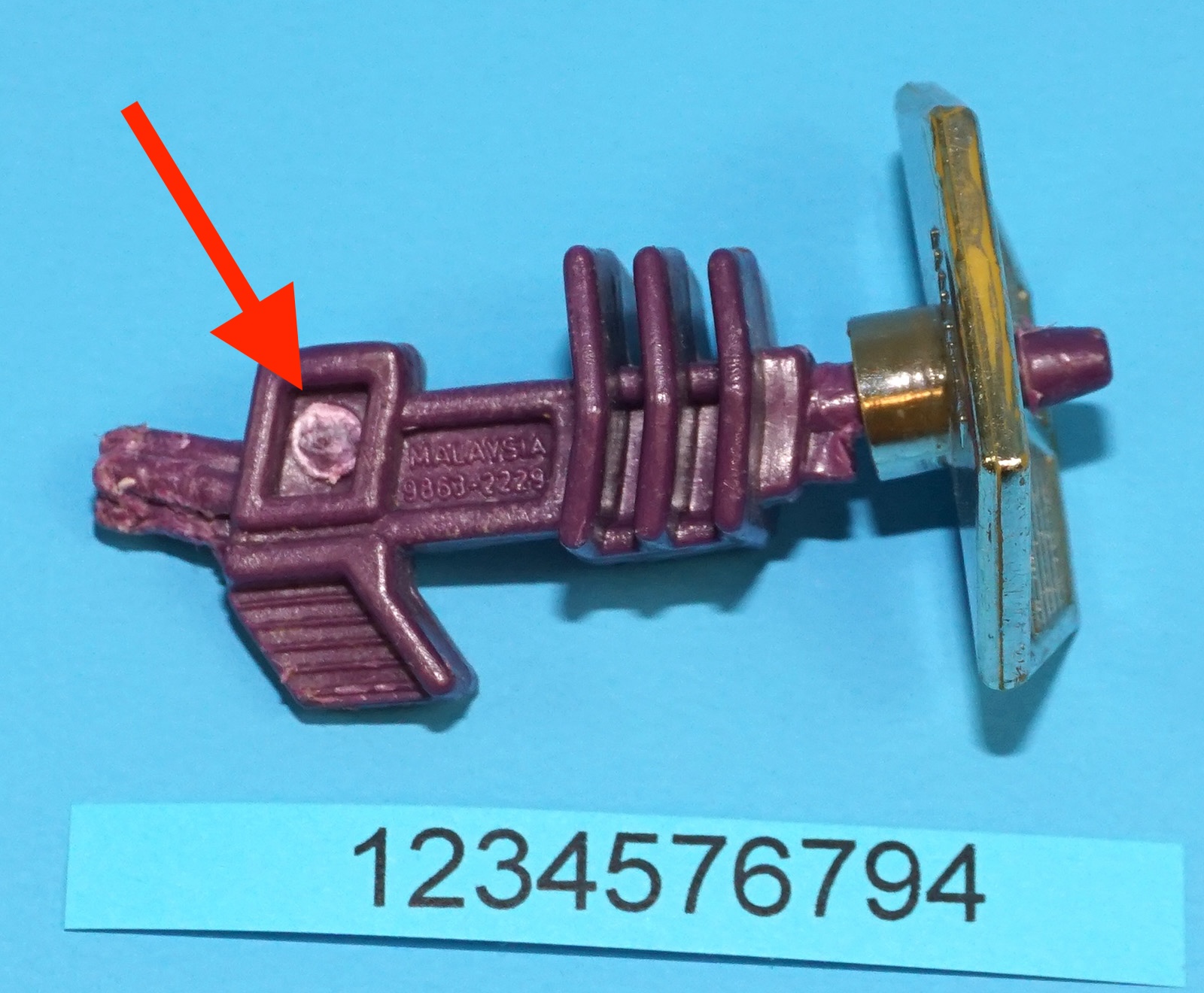 Damaged weapon accessory; see close up.