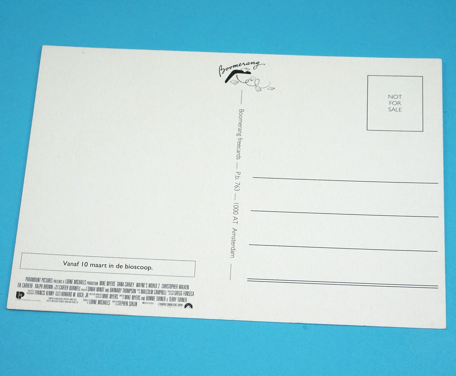 MOVIE POST CARD WAYNE’S WORLD 2 1994 BOOMERANG FREECARDS HOLLAND