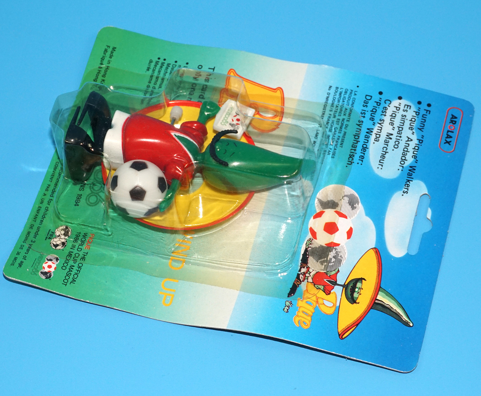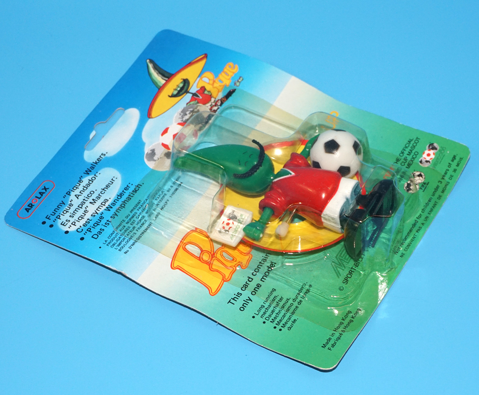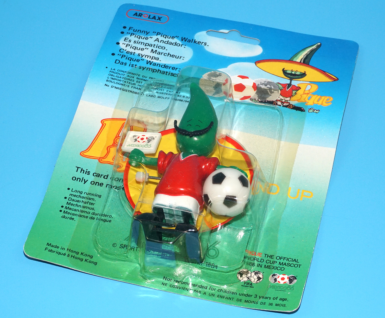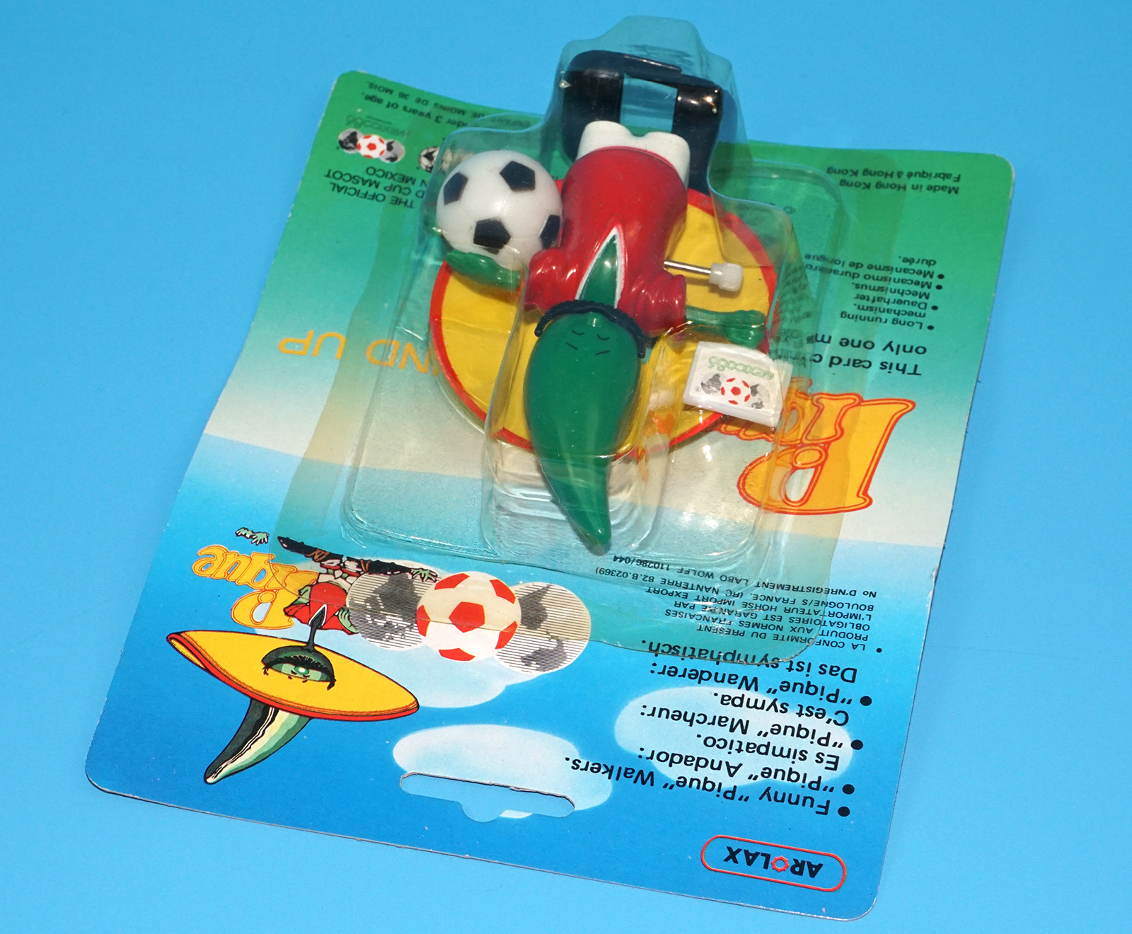 PIQUE MEXICO WORLD CUP MASCOT WIND-UP WALKER TOY FIGURE MOC MOSC EURO CARD 1986 AROLAX