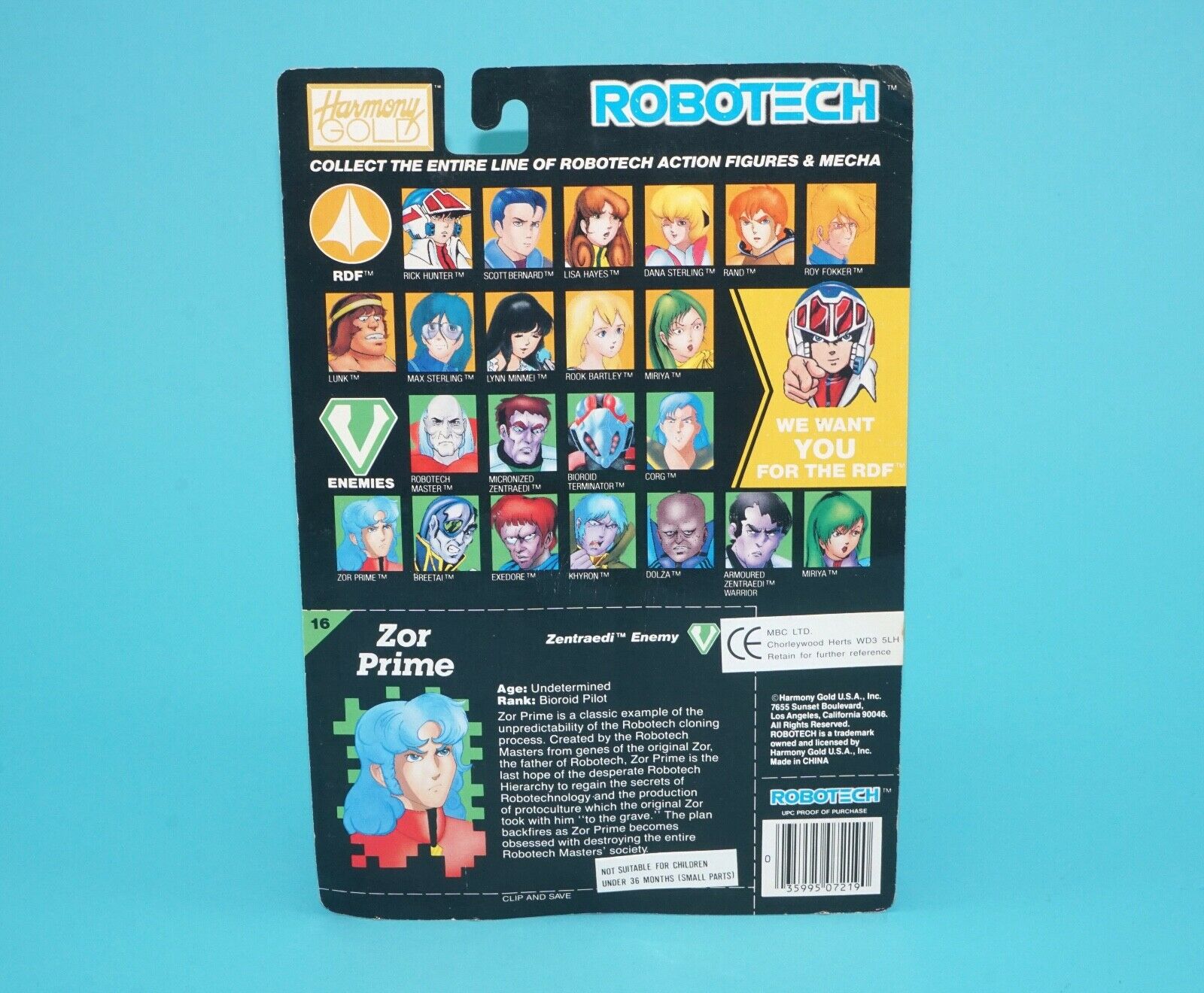 ROBOTECH ZOR PRIME MOC MOSC US CARD 1992 HARMONY GOLD