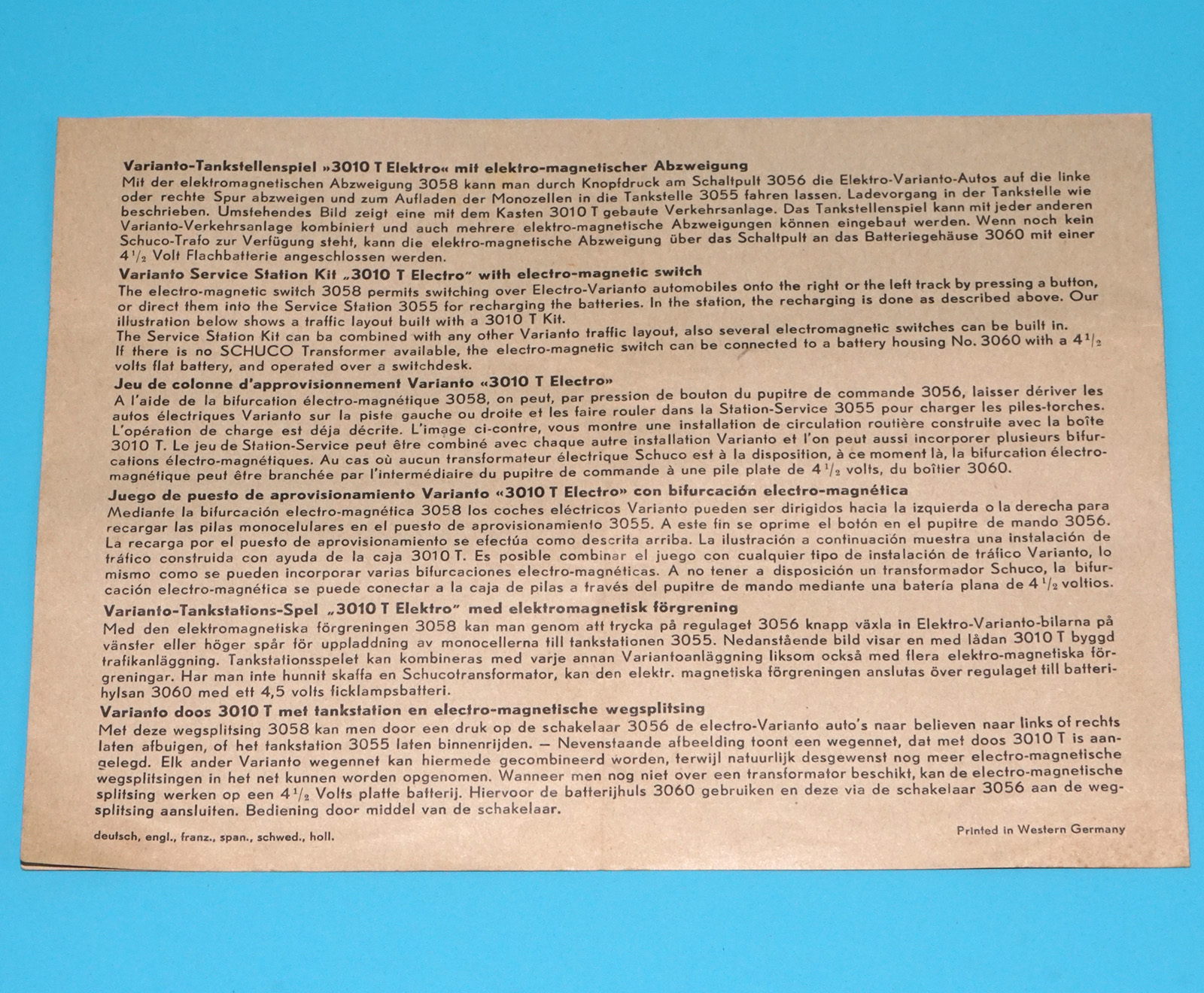 SCHUCO VARIANTO 3054 GAS STATION TANKSTELLE ORIGINAL SPARE INSTRUCTIONS 1950s SCHUCO GERMANY
