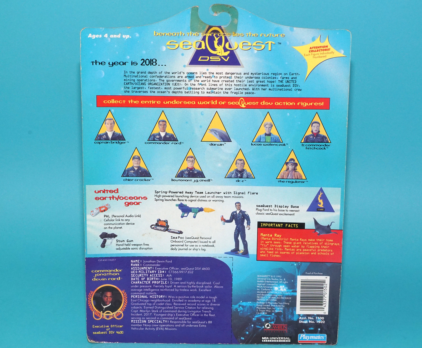 SEA QUEST DS COMMANDER JONATHON DEVIN FORD MOC MOSC 1993 PLAYMATES