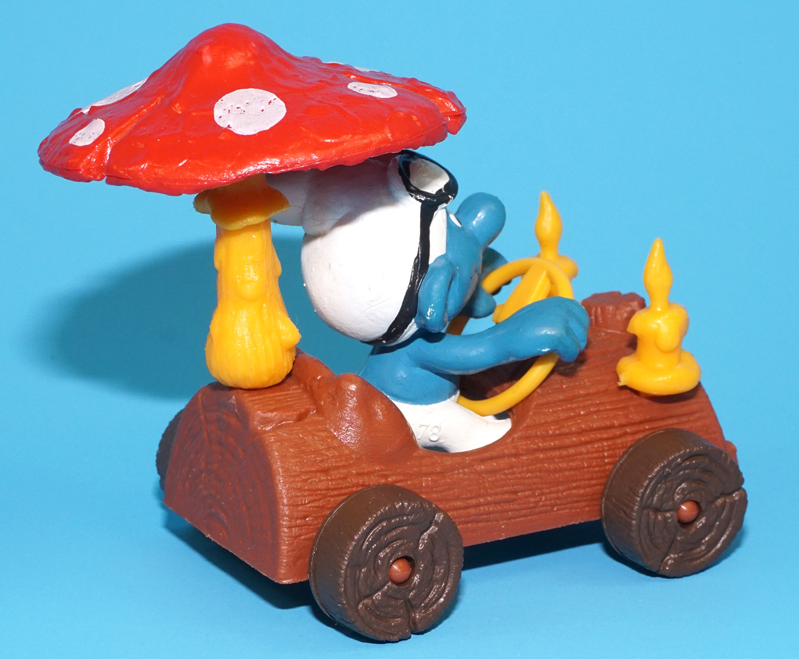 SMURFS 40232 SUPER SMURF LOG CAR 100% COMPLETE W. GERMANY COO 1983 SCHLEICH