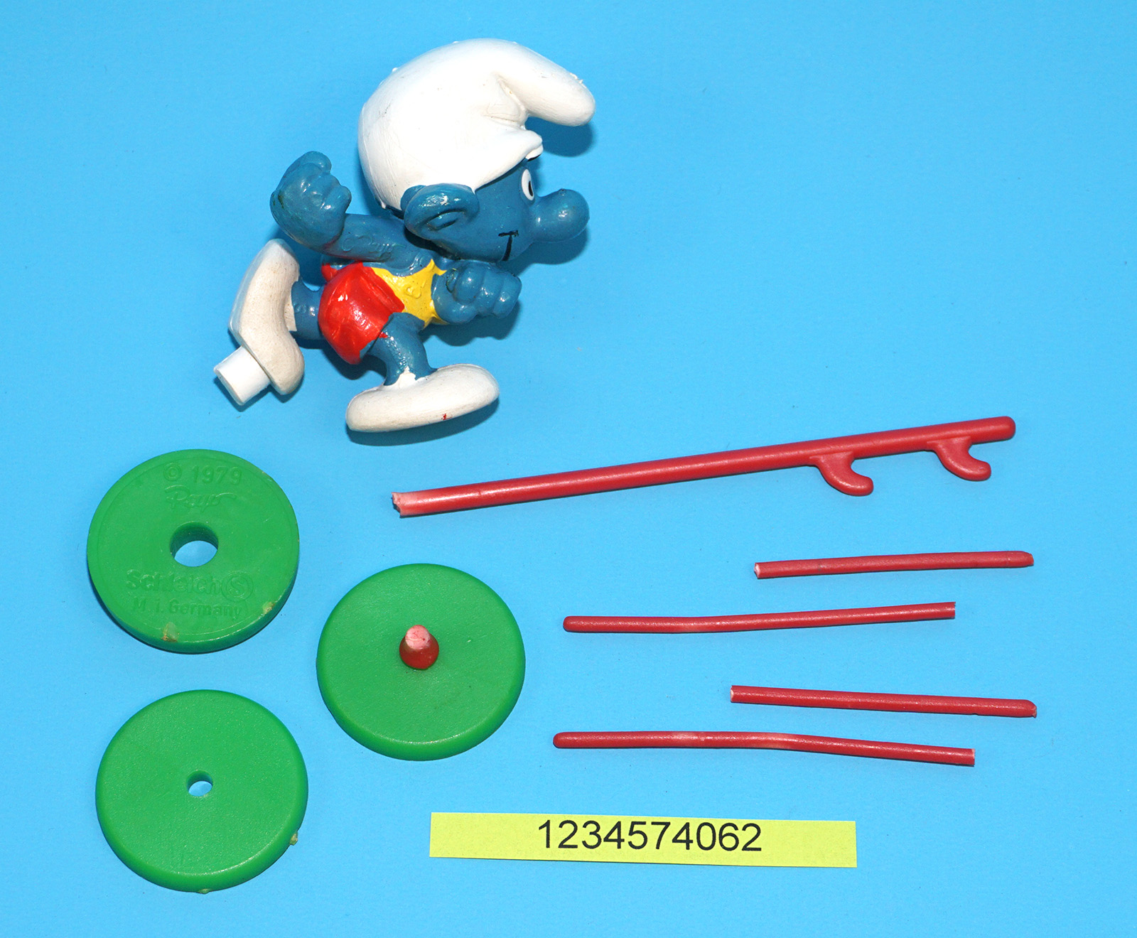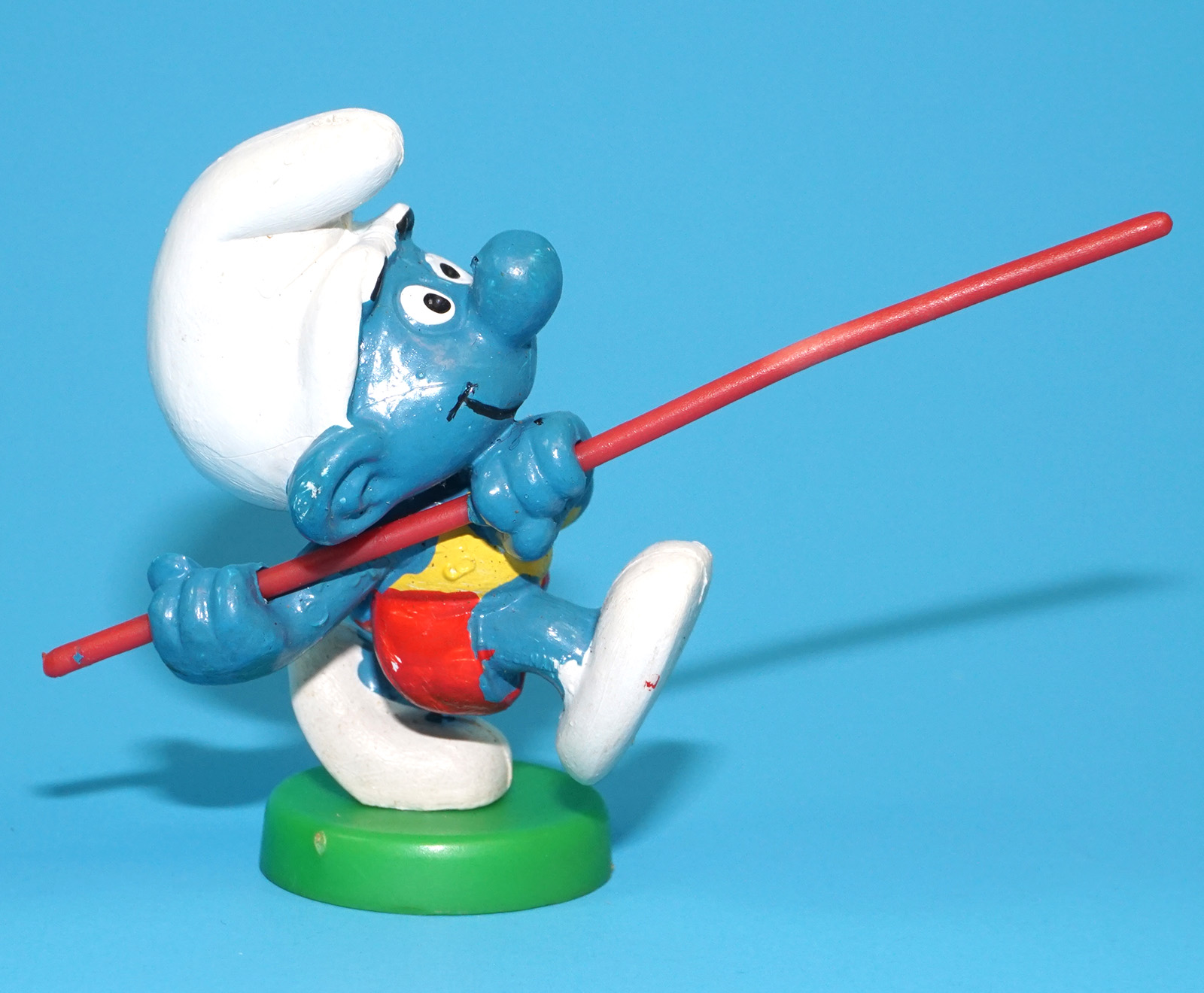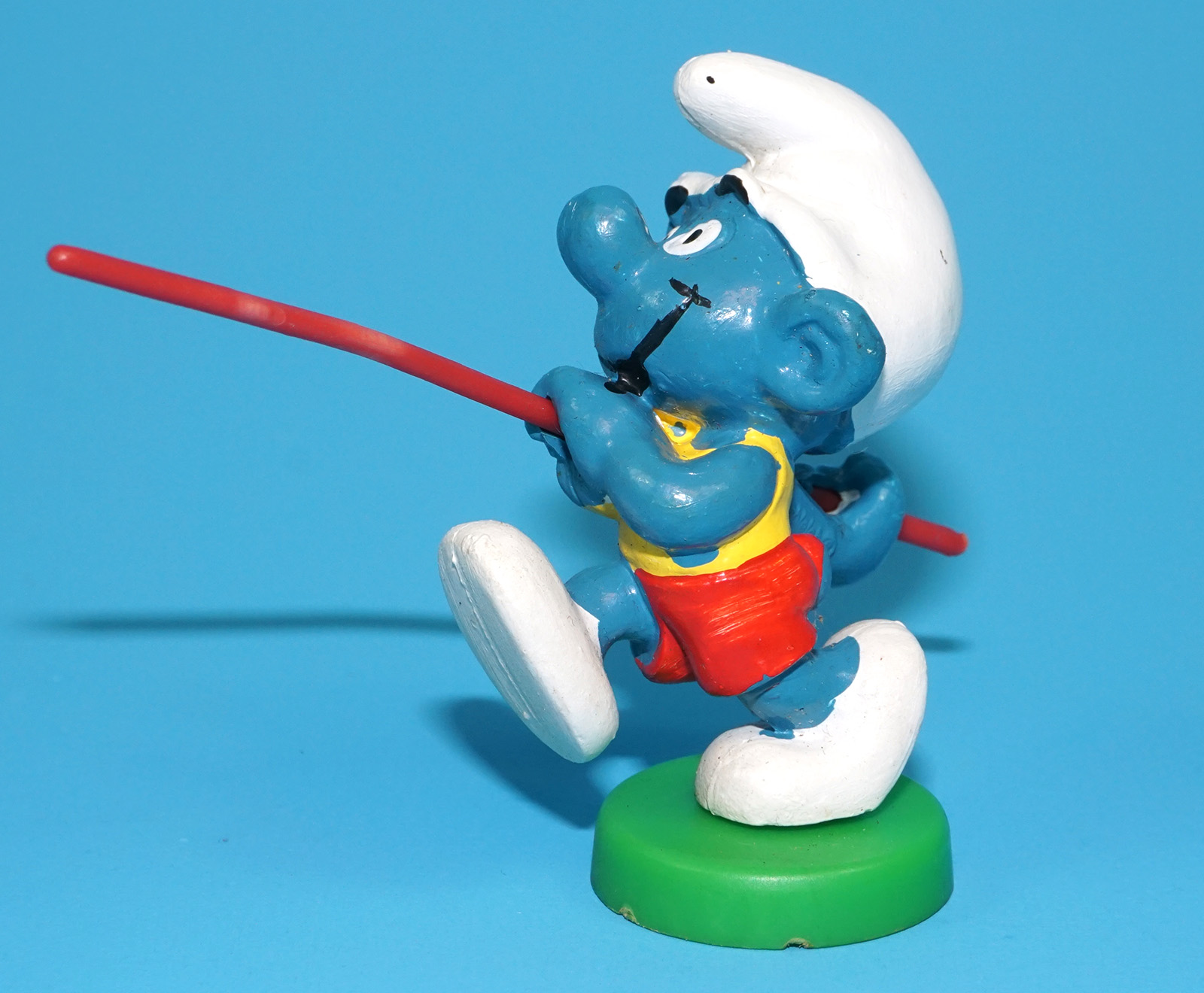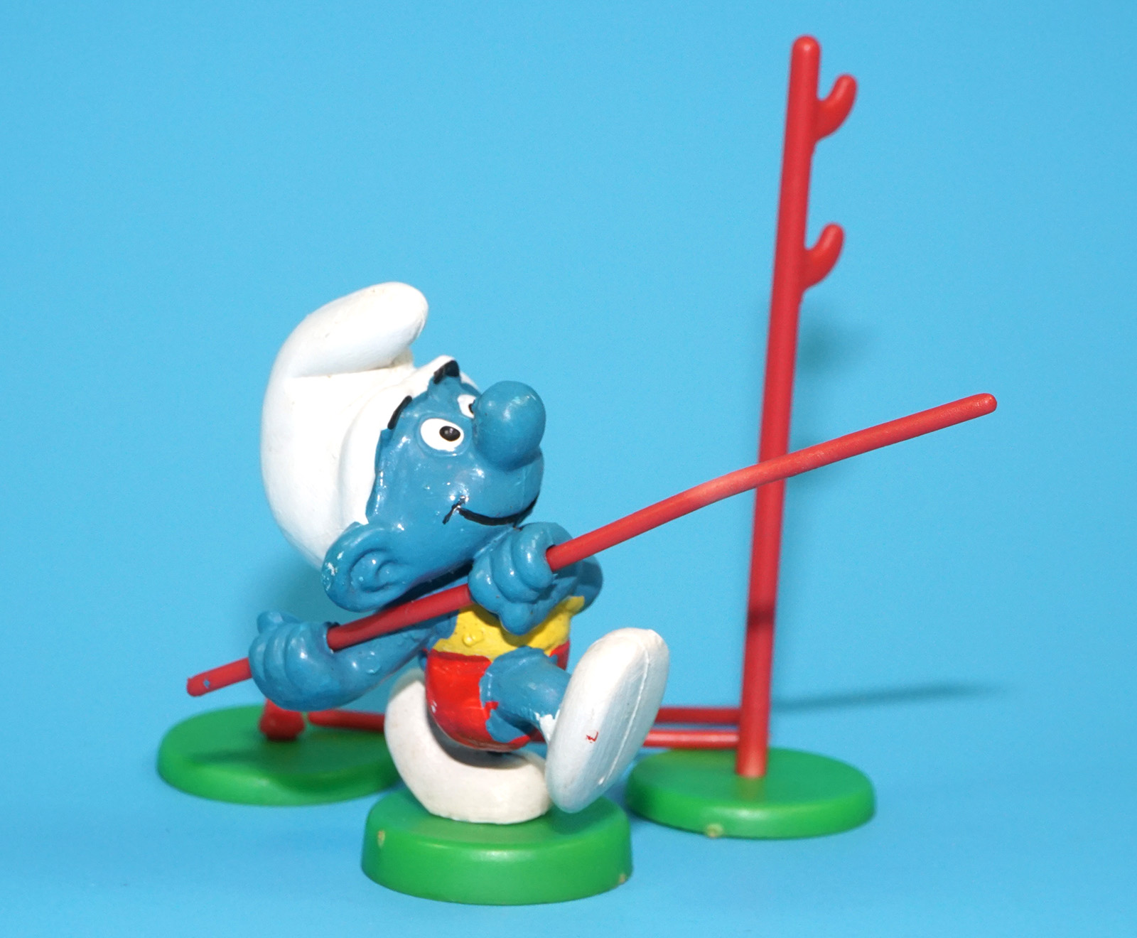 SMURFS 40506 SUPER SMURF POLE VAULT NEAR COMPLETE W. GERMANY COO 1979 SCHLEICH READ