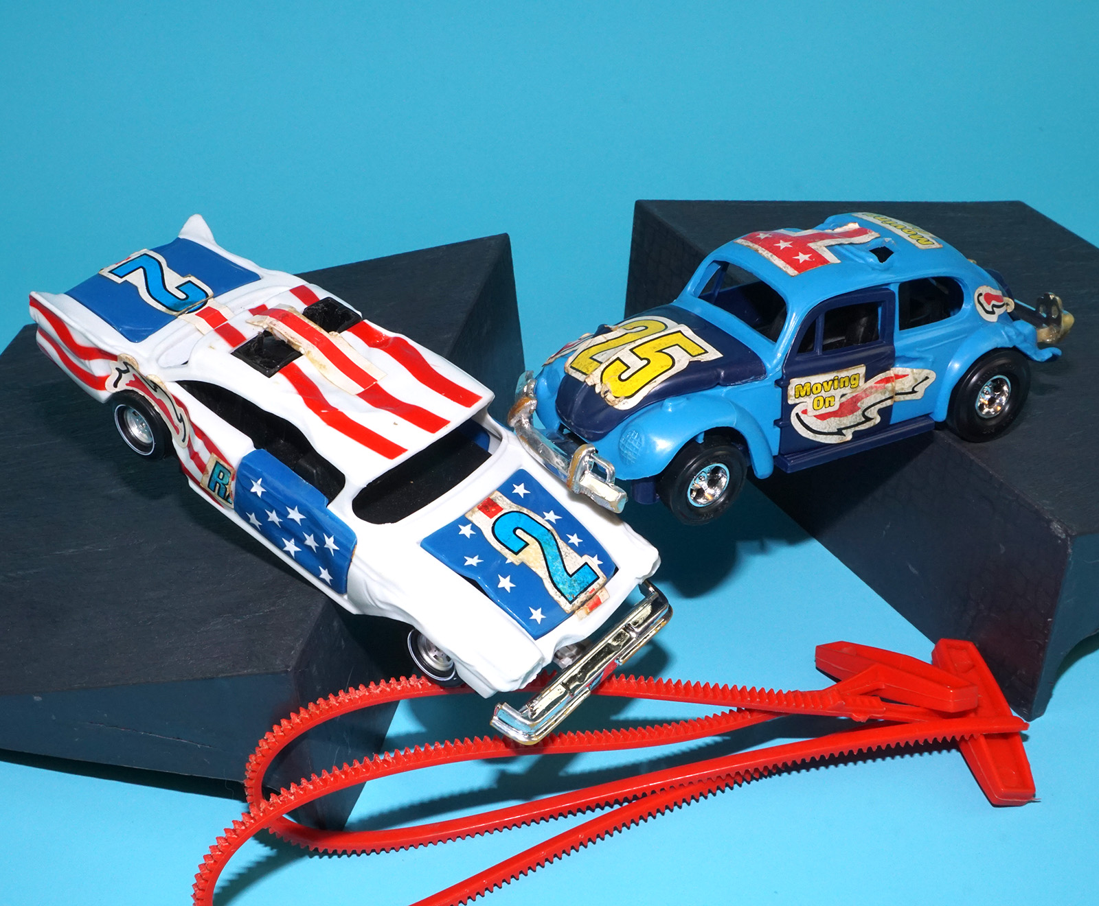 SSP SMASH-UP DERBY CRAZY RACERS 57 FORD & VW BEETLE COMPLETE EURO BOX SET 1975 CLIPPER KENNER HOLLAND