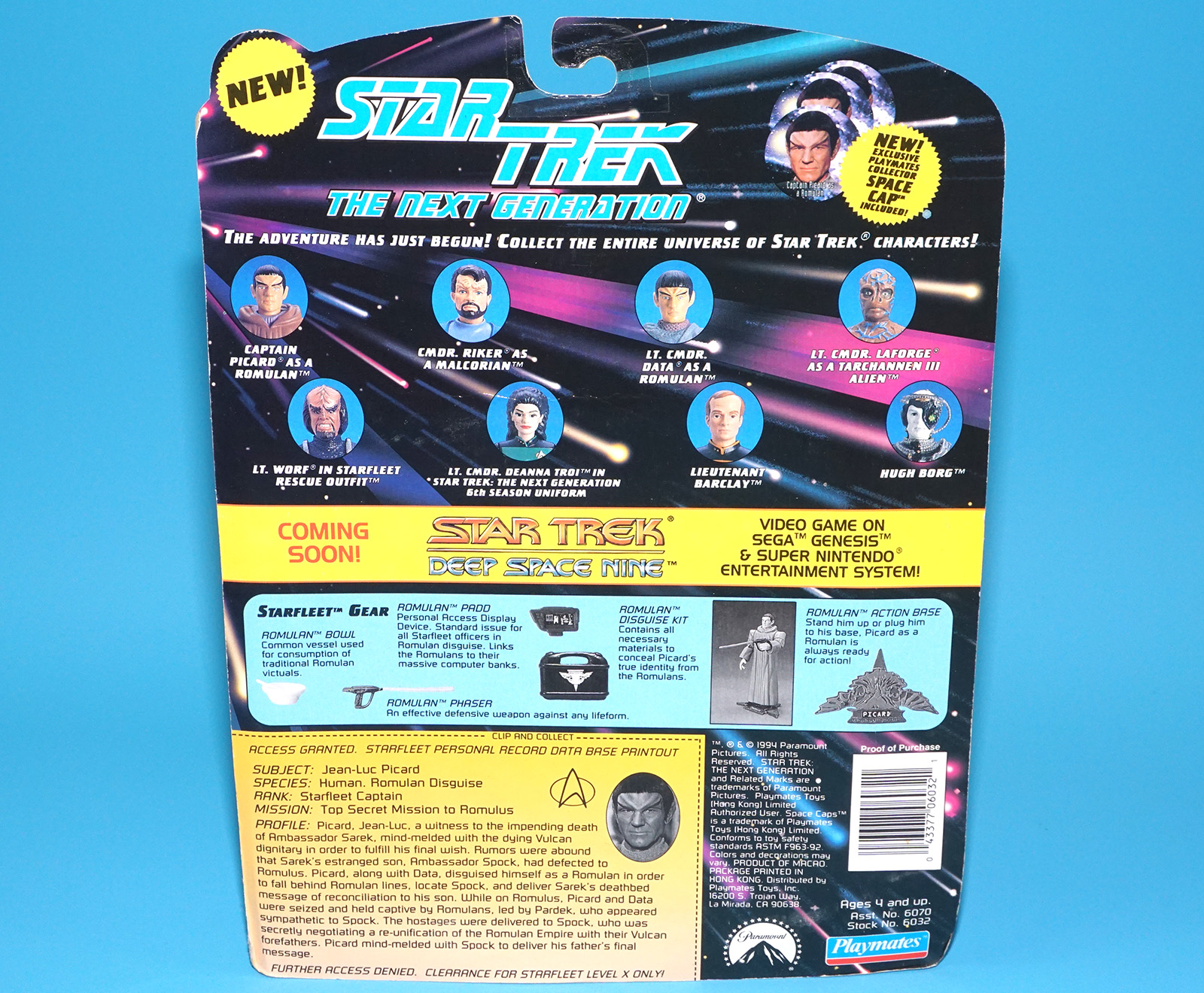 STAR TREK TNG NEXT GENERATION CAPTAIN PICARD AS ROMULAN MOC MOSC US CARD 1994 PLAYMATES