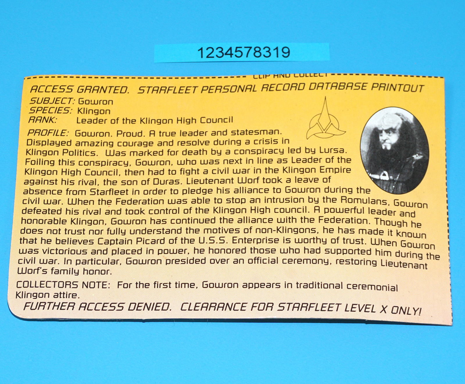 STAR TREK TNG NEXT GENERATION GOWRON IN RITUAL KLINGON ATTIRE 100% COMPLETE 1994 PLAYMATES
