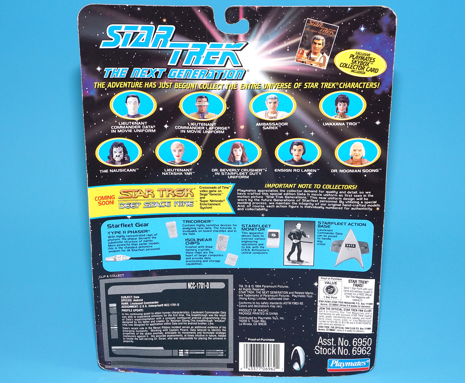 STAR TREK TNG NEXT GENERATION LIEUTENANT COMMANDER DATA IN MOVIE UNIFORM MOC MOSC US CARD 1994 PLAYMATES