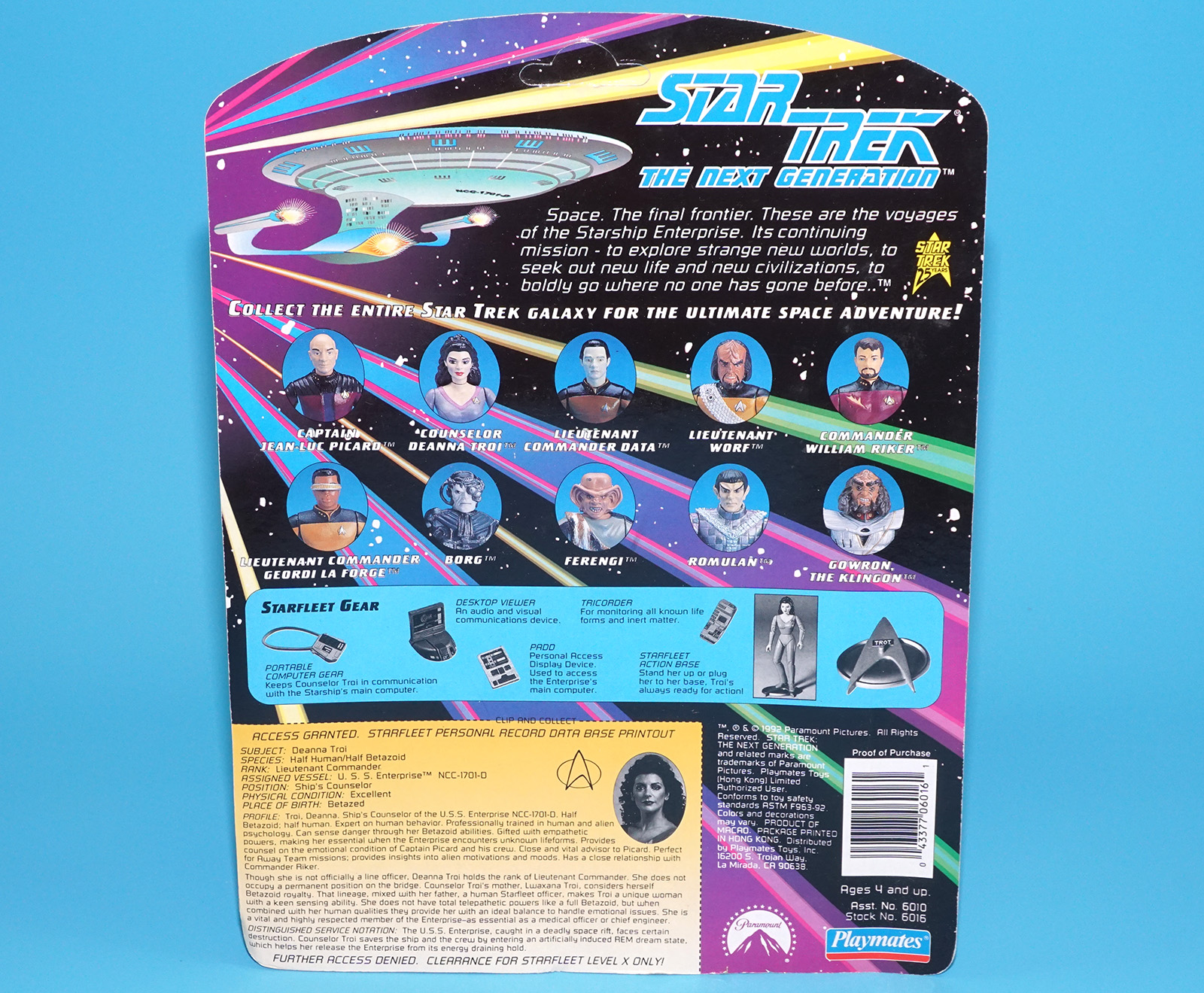 STAR TREK TNG NEXT GENERATION LIEUTENANT COMMANDER DEANNA TROI MOC MOSC US CARD 1992 PLAYMATES