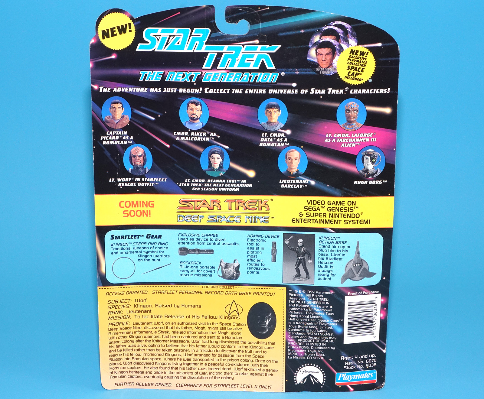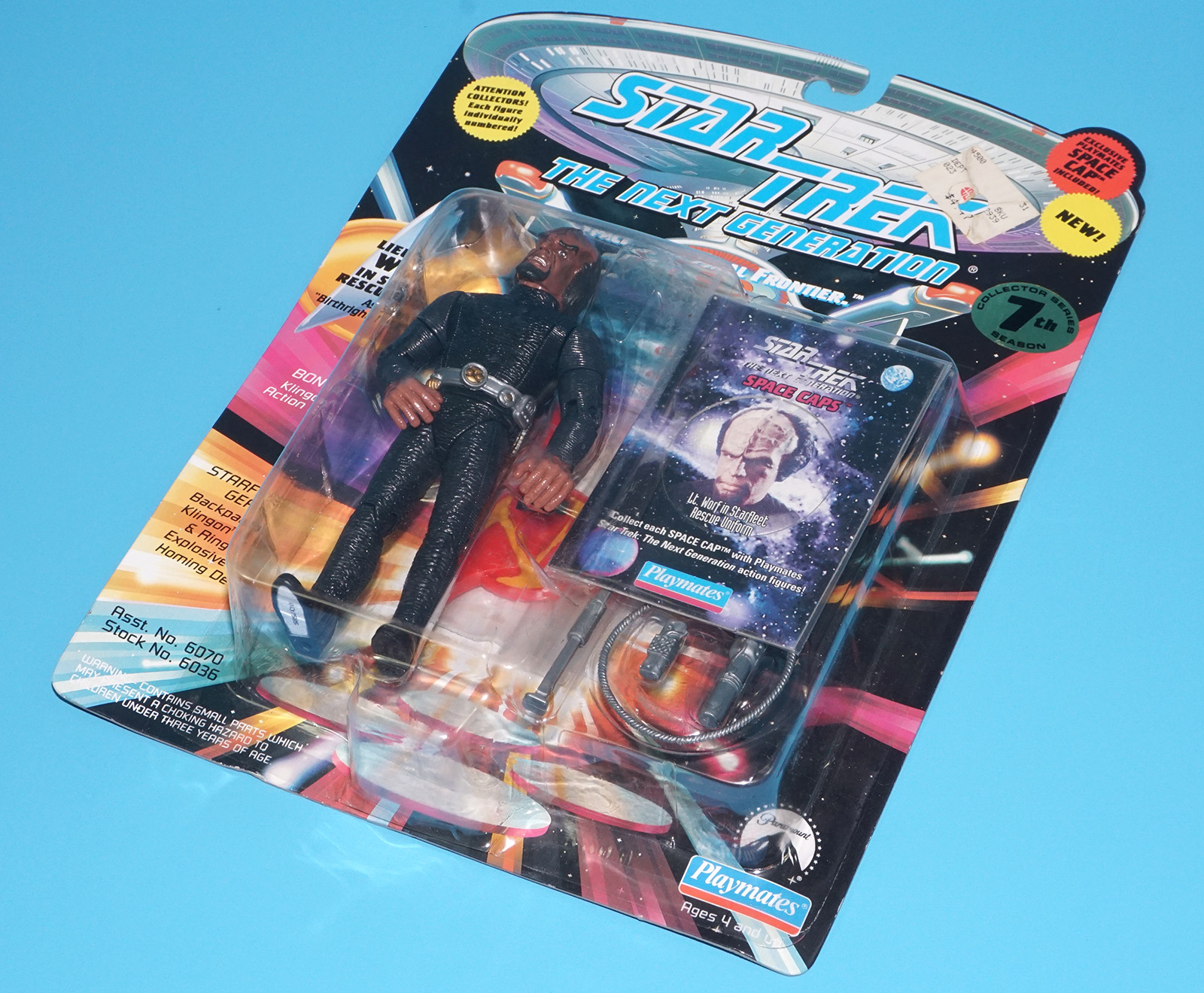 STAR TREK TNG NEXT GENERATION LIEUTENANT WORF STARFLEET RESCUE OUTFIT MOC MOSC US CARD 1994 PLAYMATES