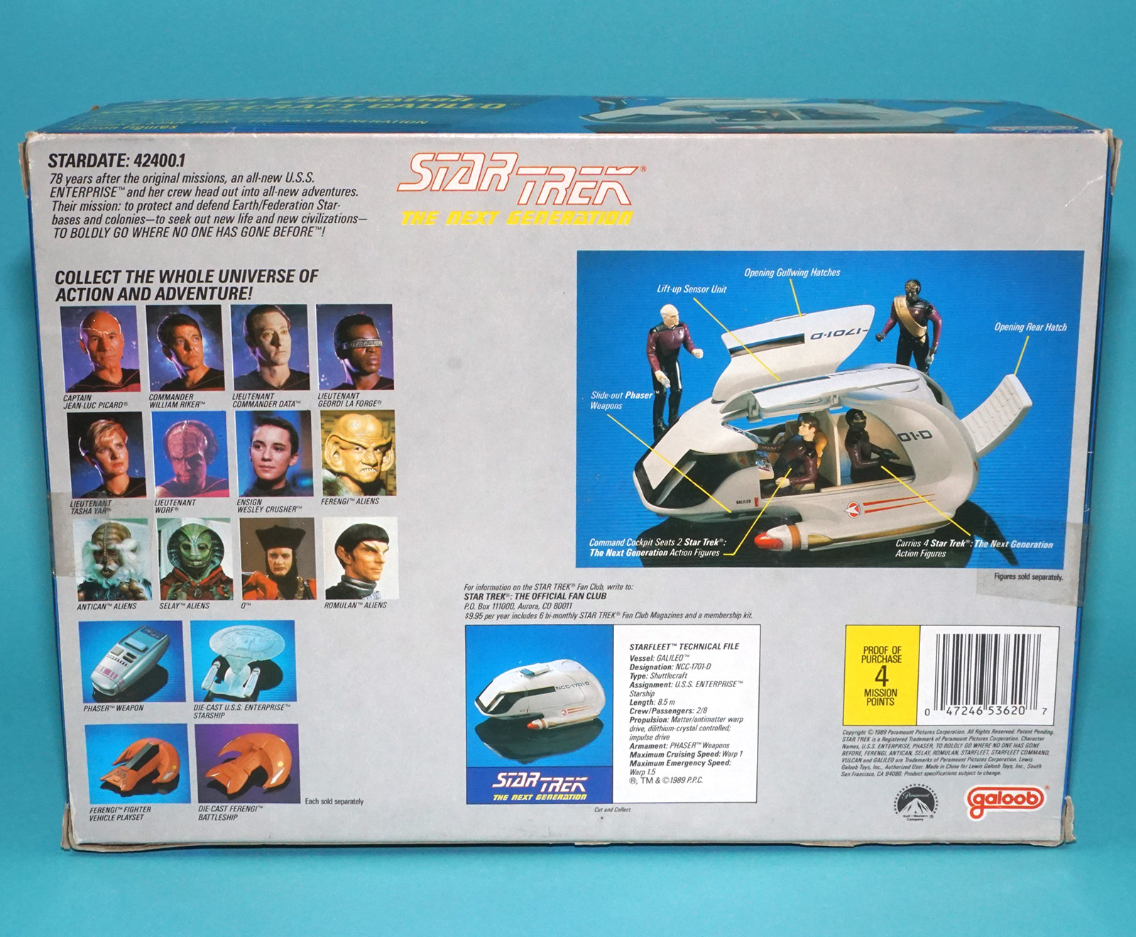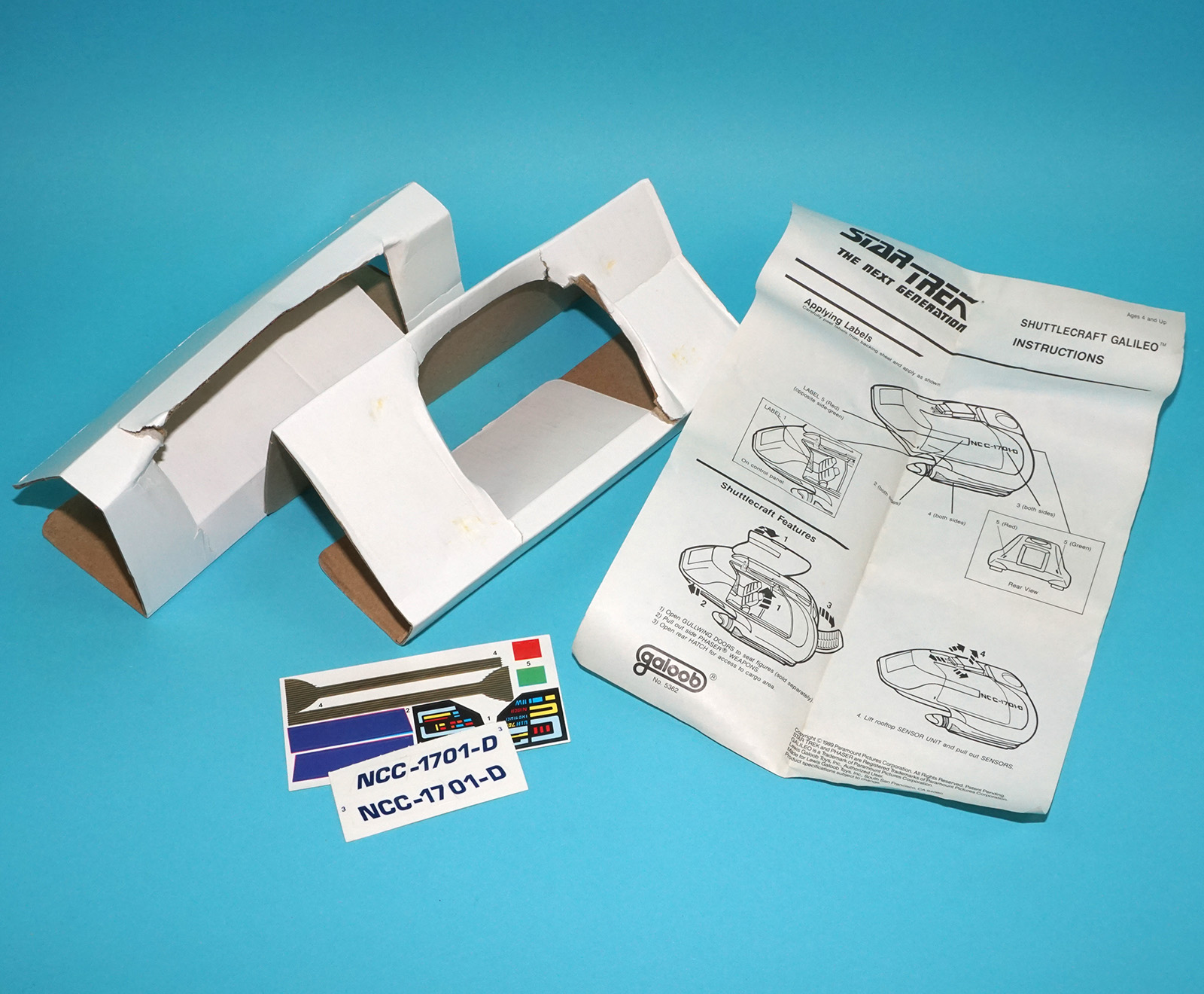 STAR TREK TNG SHUTTLECRAFT GALILEO ORIGINAL EMPTY US BOX & INSERTS 1989 GALOOB