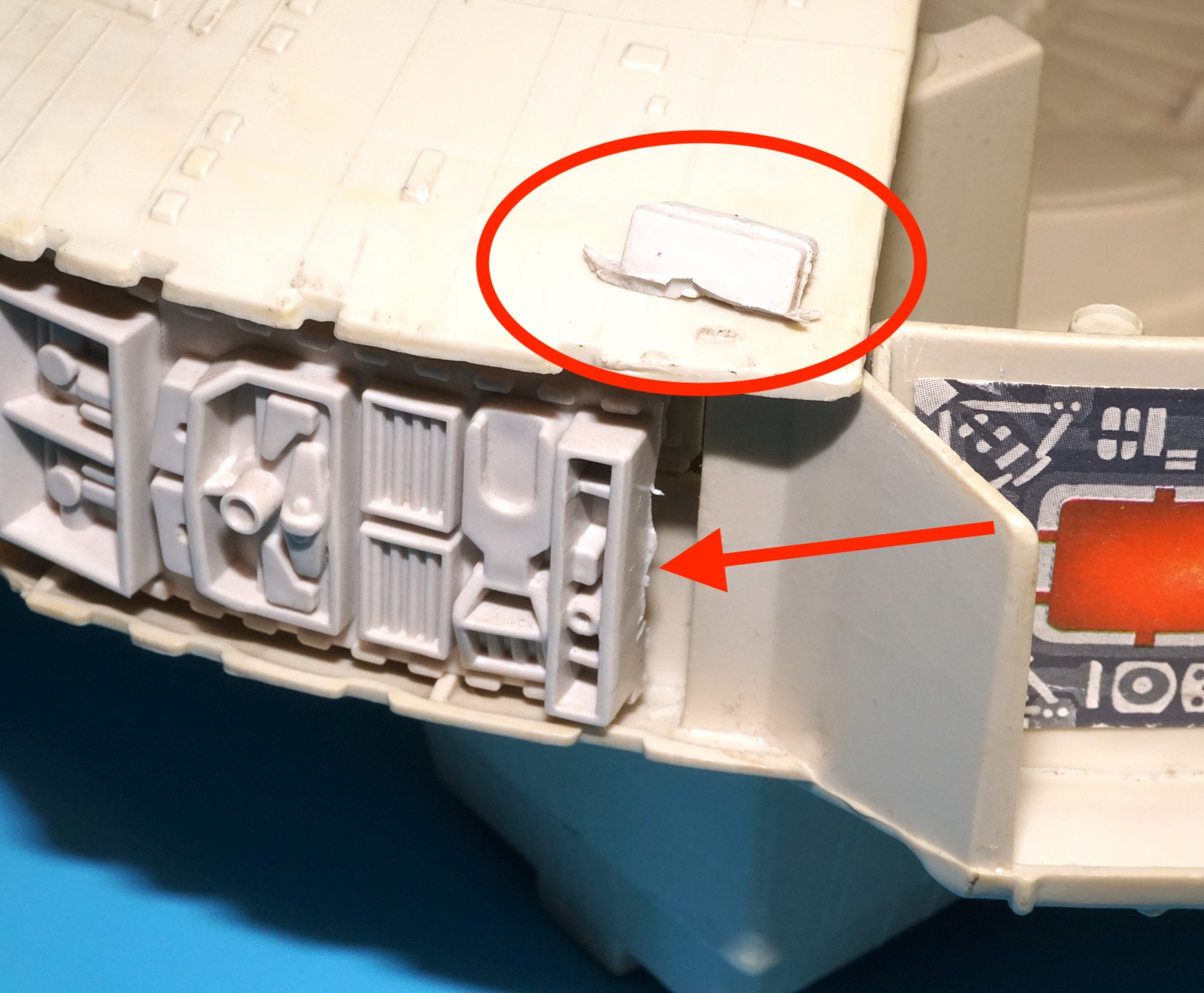 Broken clip on outer panel. Minor damage to body. See close ups for details. Overall very good.