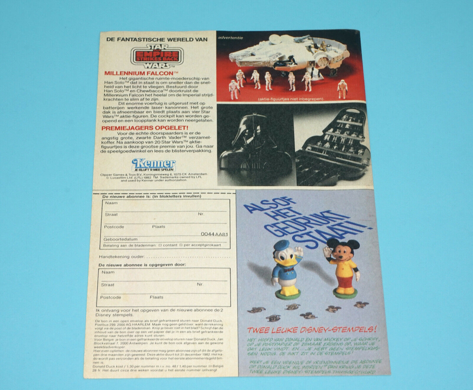 STAR WARS CLIPPER MAGAZINE ADVERT ESB 1982 DONALD DUCK HOLLAND KENNER