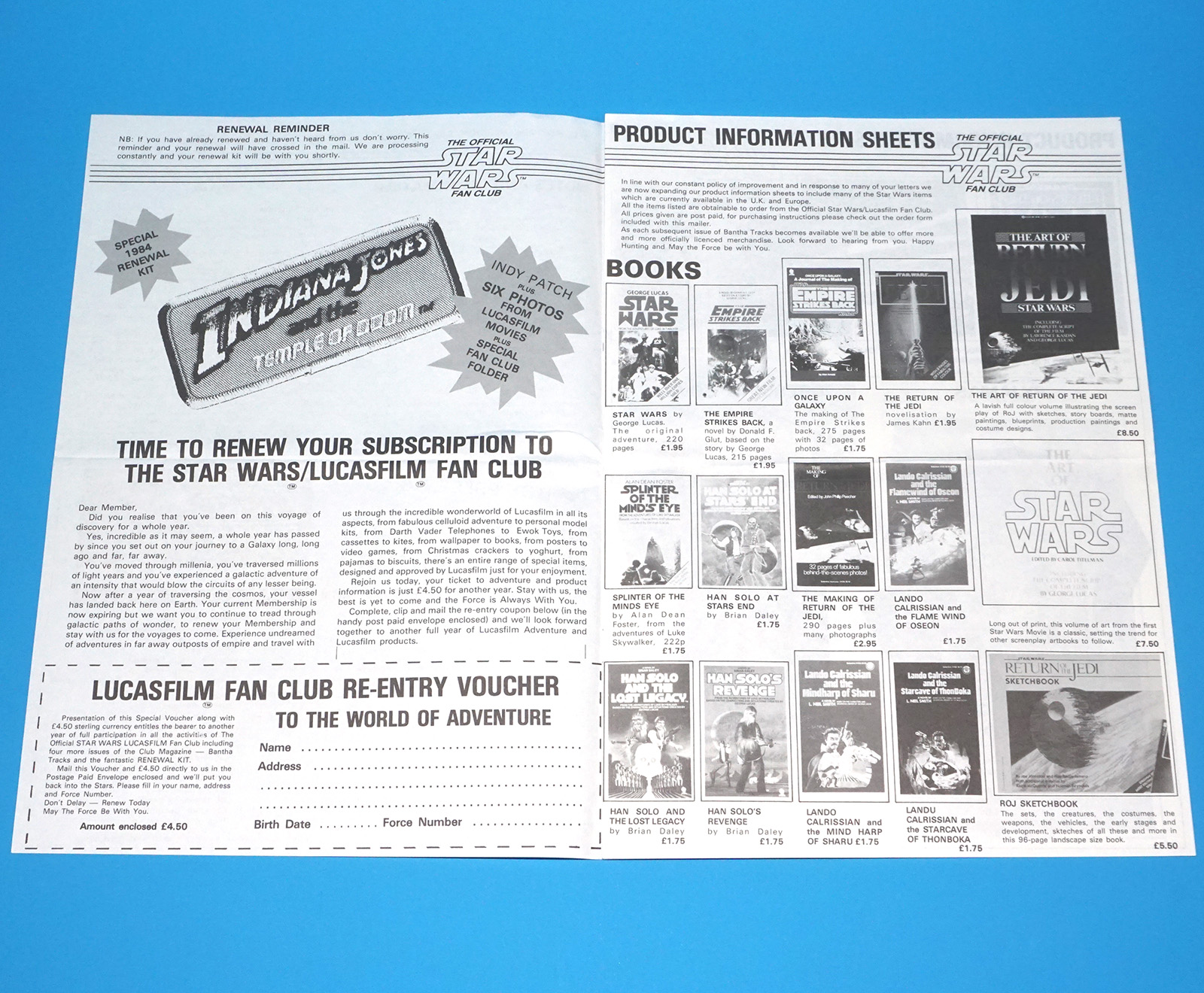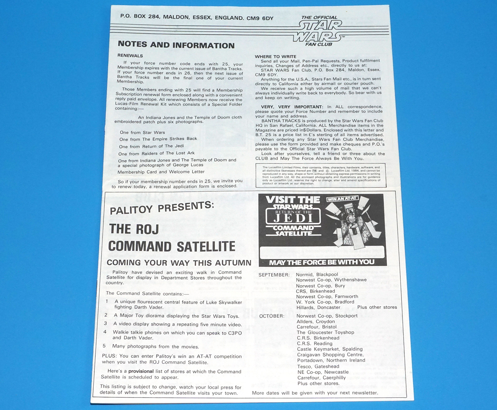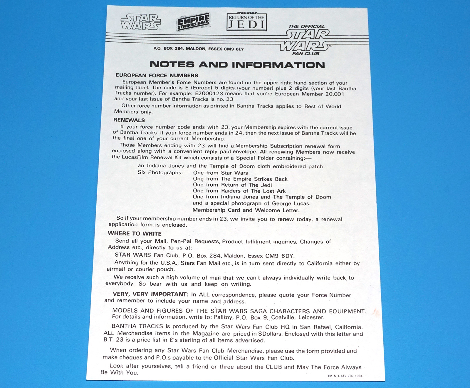 STAR WARS OFFICIAL FAN CLUB KIT 1984 BANTHA TRACKS NUMBER 23 + ORDER FORMS