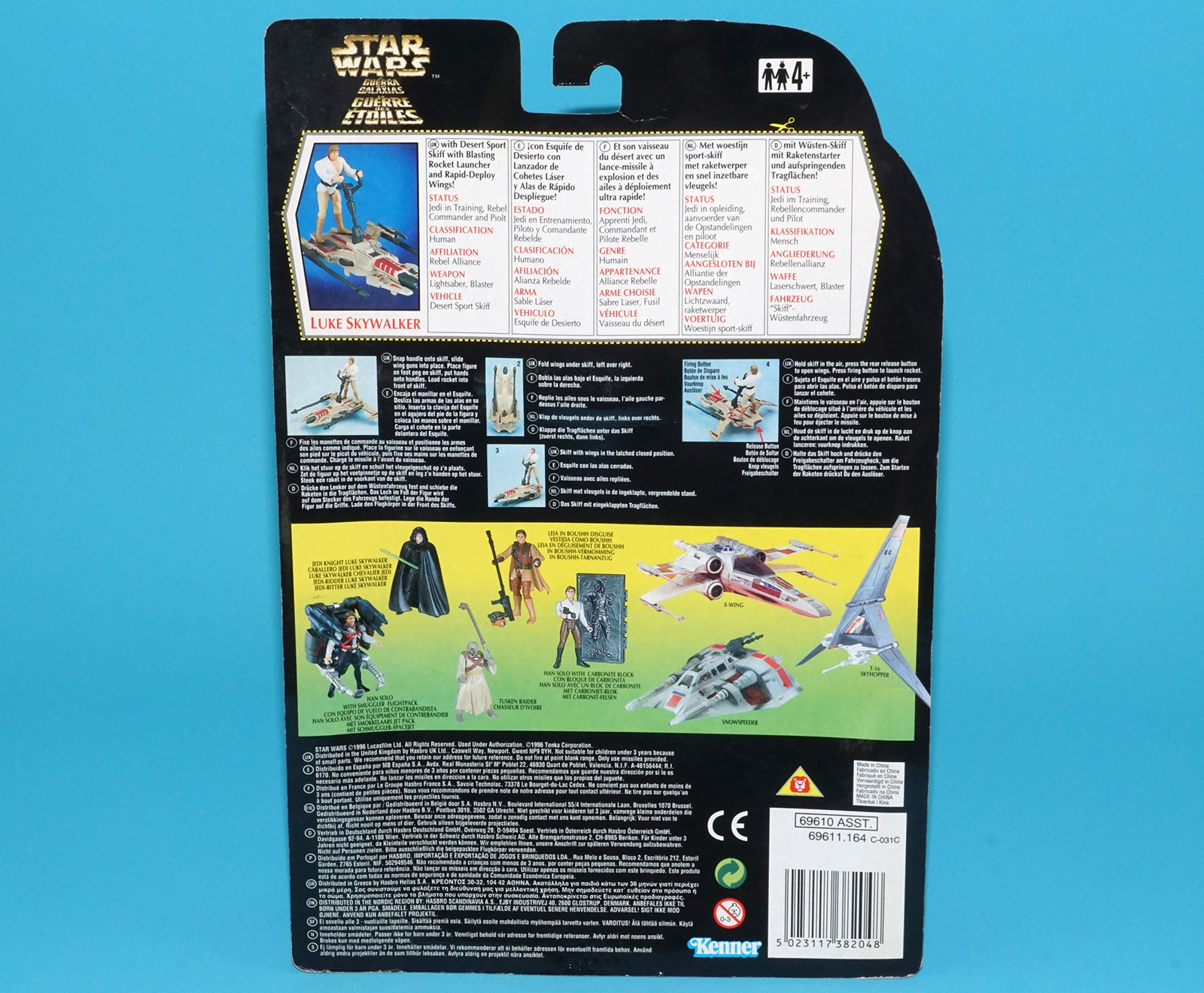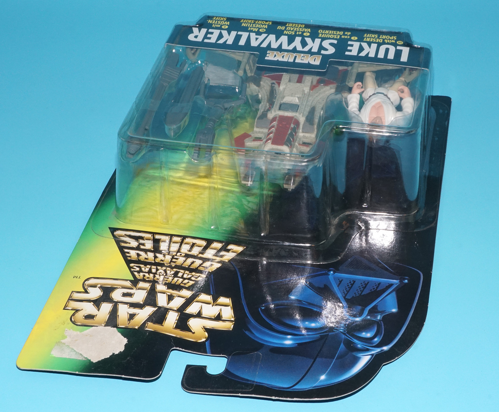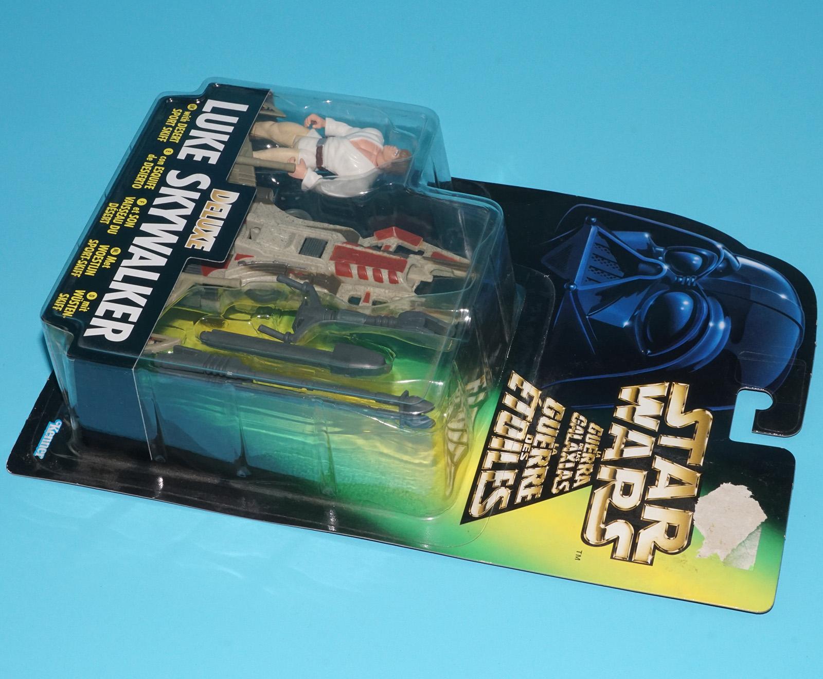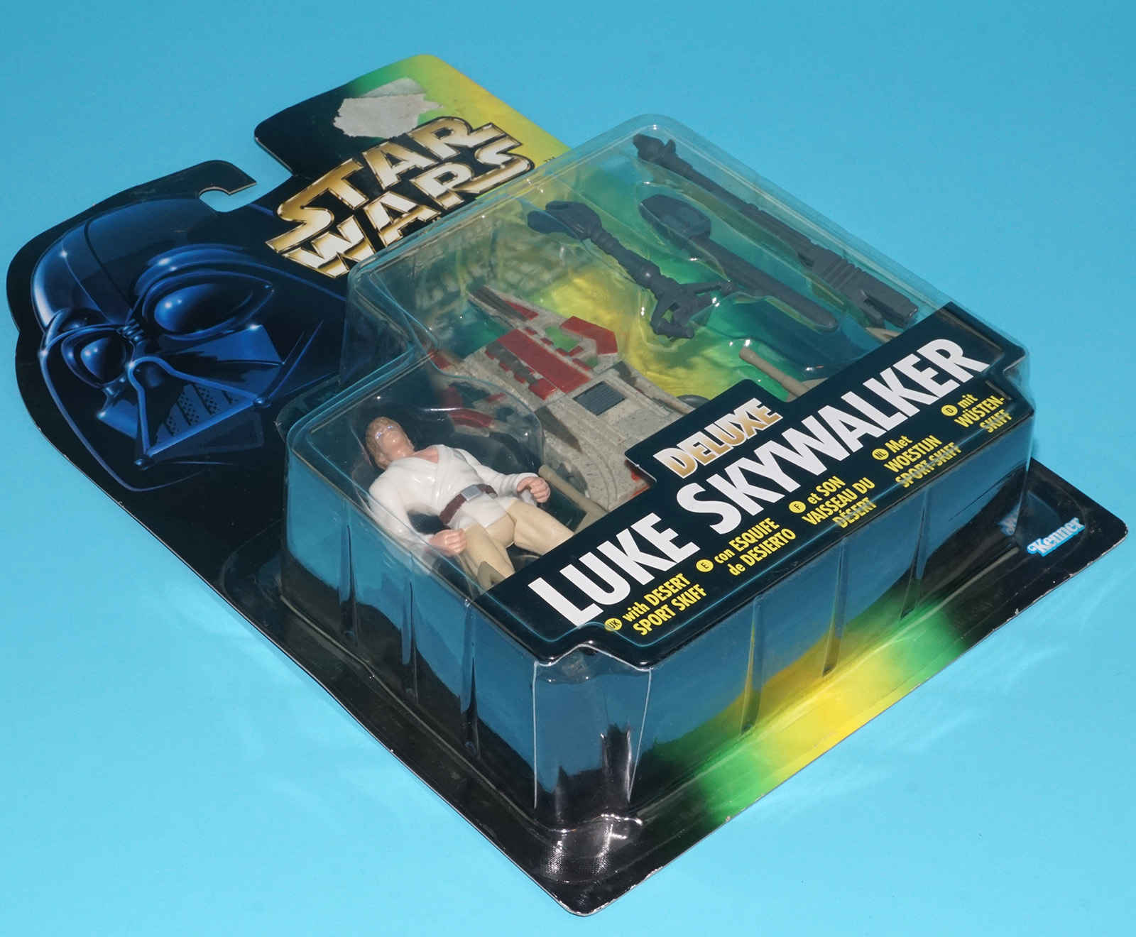 STAR WARS POTF2 DELUXE LUKE SKYWALKER & SPORT SKIFF MOC MOSC EURO CARD 1996 KENNER