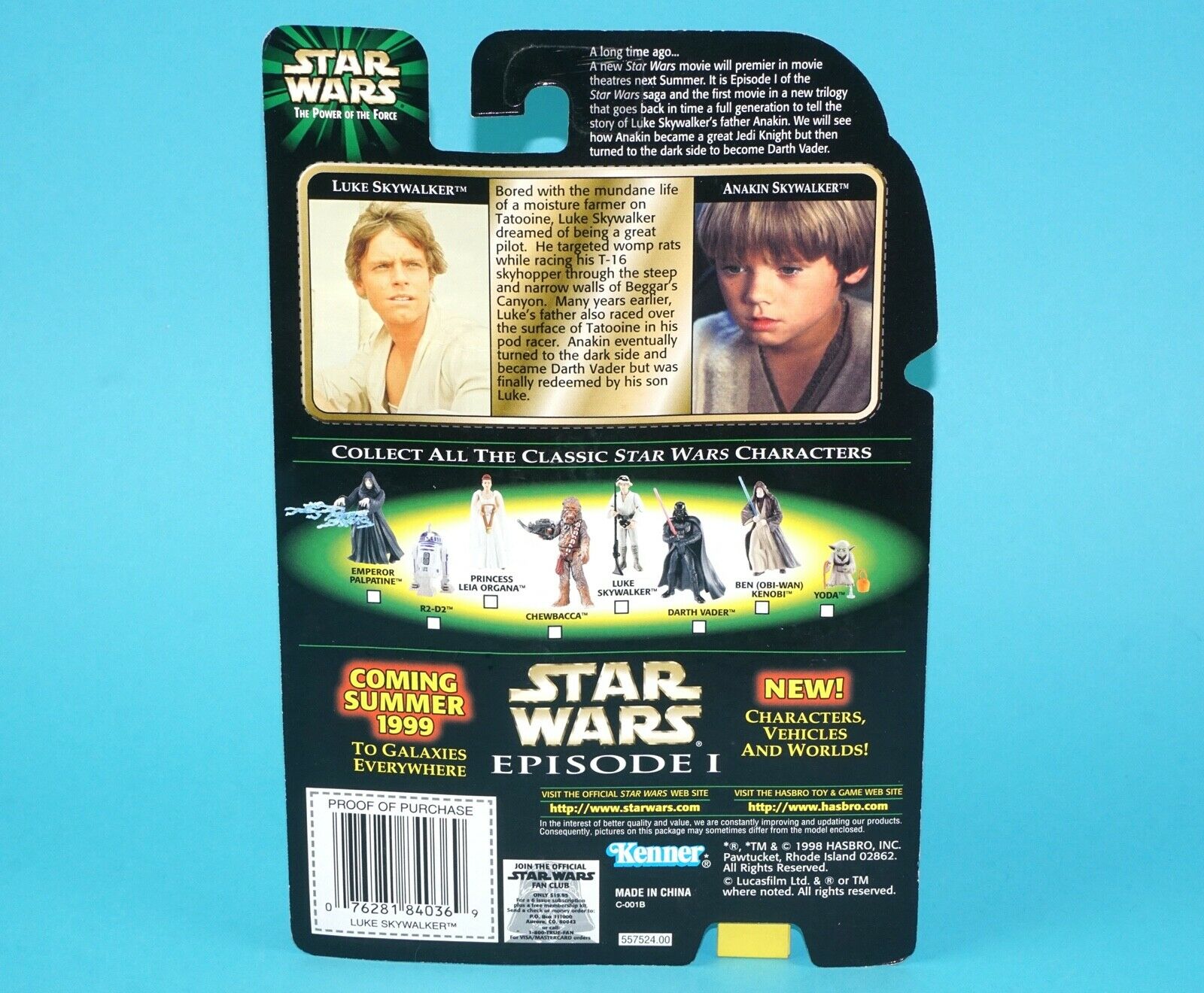 STAR WARS POTF2 LUKE SKYWALKER WITH BLASTER RIFLE MOC MOSC US FLASHBACK CARD 1998 KENNER