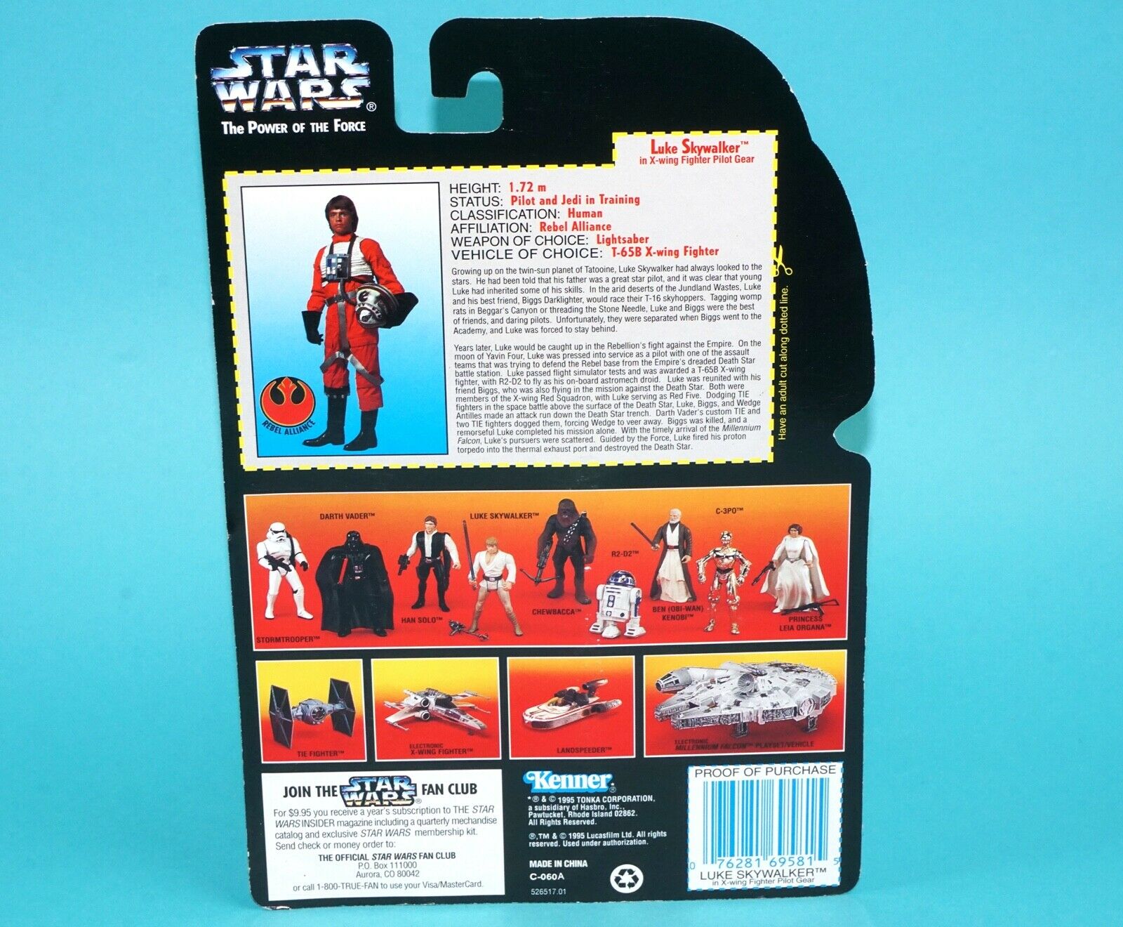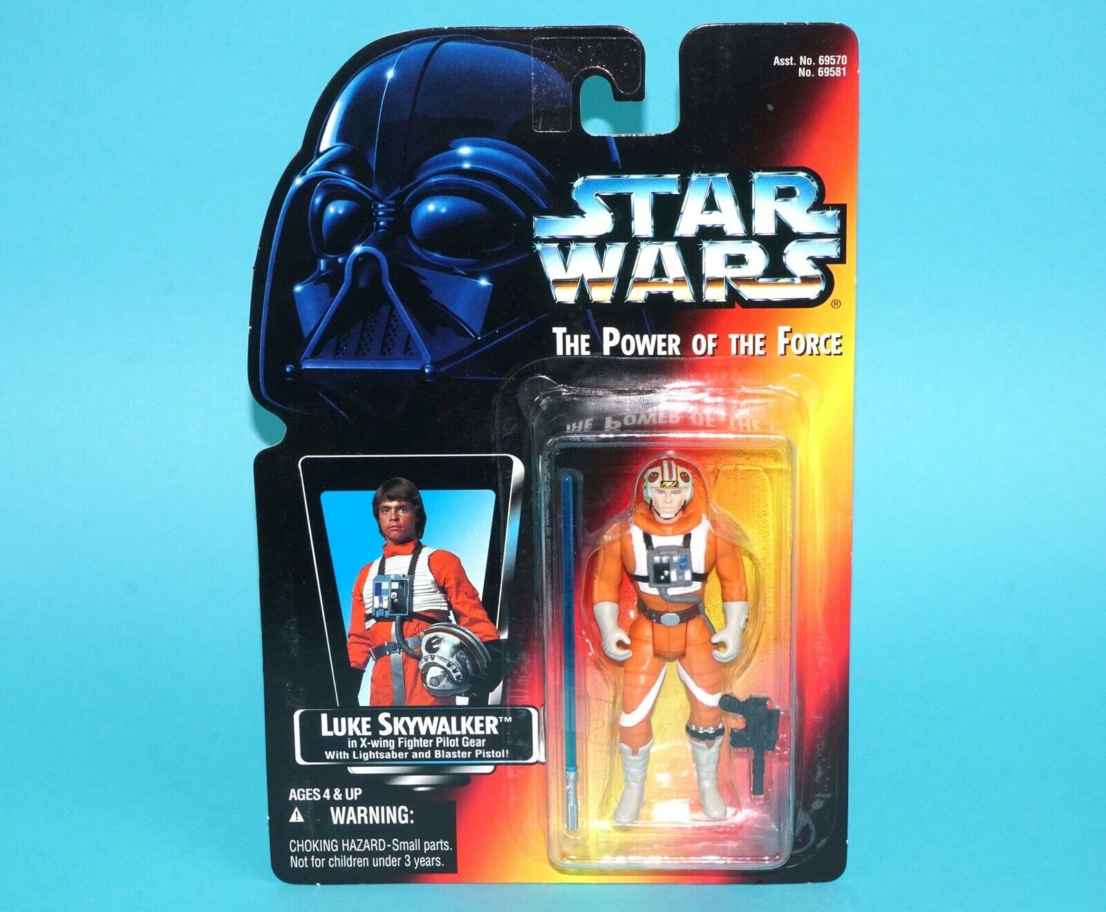 STAR WARS POTF2 LUKE SKYWALKER X-WING PILOT LONG SABER MOC MOSC US CARD 1995 KENNER