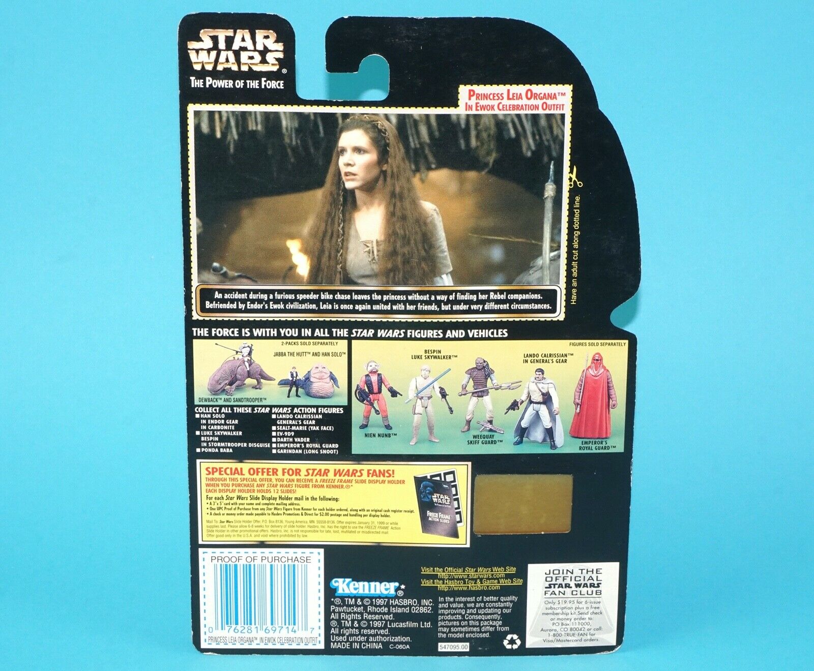 STAR WARS POTF2 PRINCESS LEIA EWOK CELEBRATION MOC MOSC US FREEZE FRAME CARD 1997 KENNER