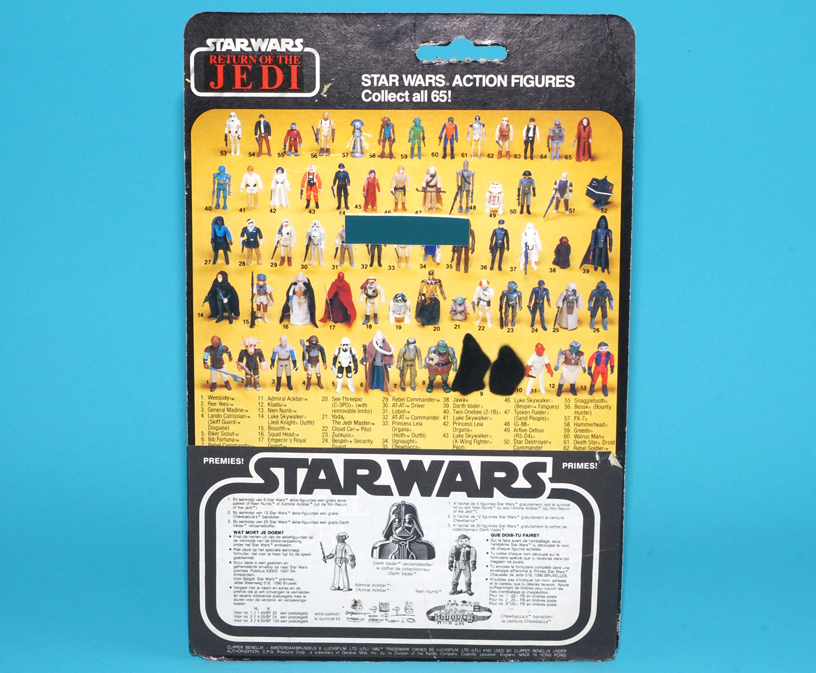 STAR WARS ROTJ BIB FORTUNA CARDBACK CARD 65-BACK CLIPPER WRAP 1983 KENNER PALITOY