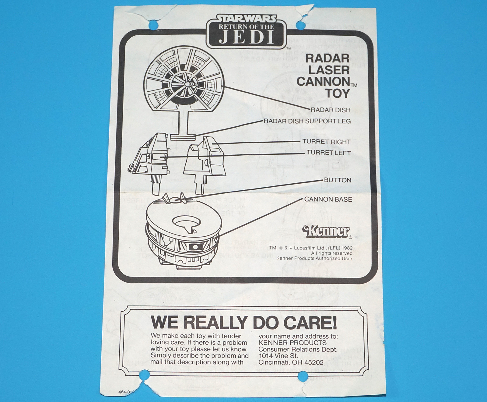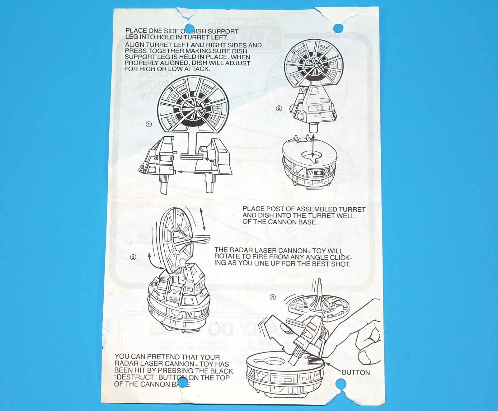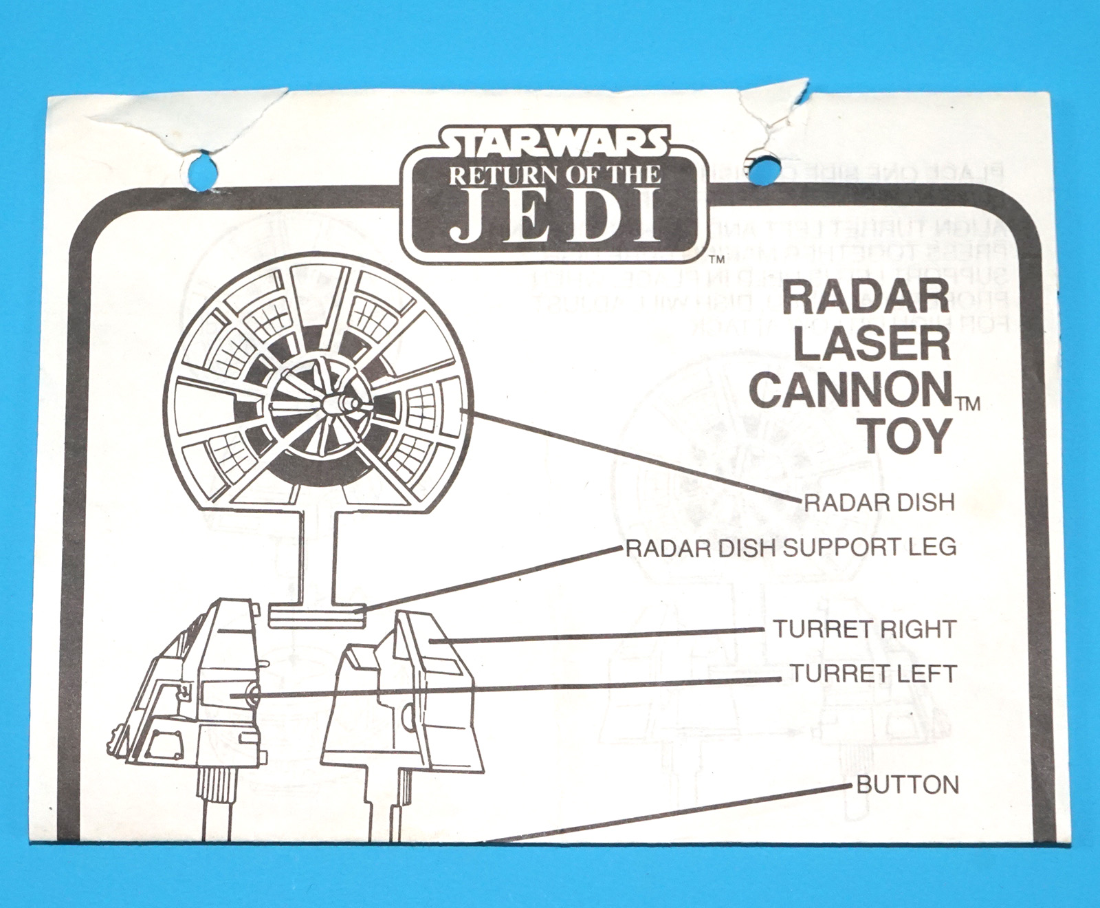 STAR WARS ROTJ RADAR LASER CANNON ORIGINAL SPARE INSTRUCTIONS 1982 KENNER