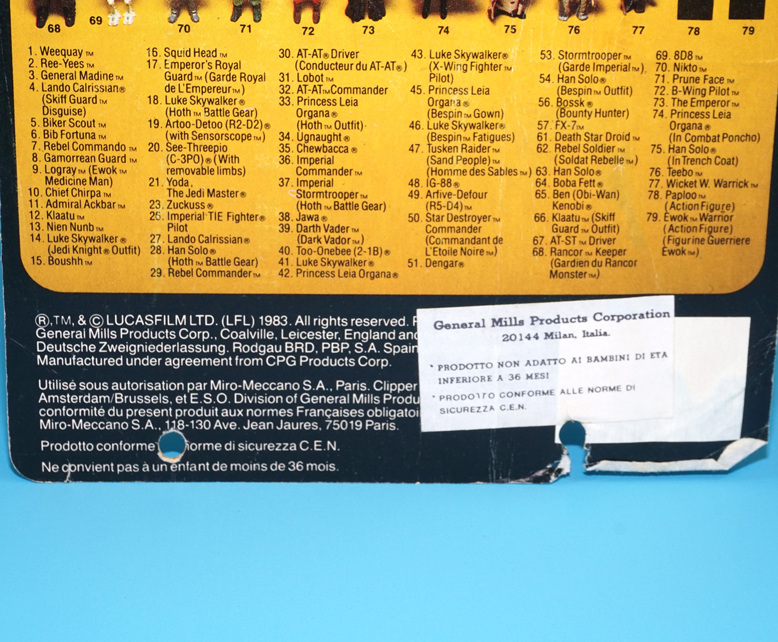 STAR WARS ROTJ TRI-LOGO WICKET W. WARRICK CARDBACK CARD 79-BACK 1984 KENNER PALITOY