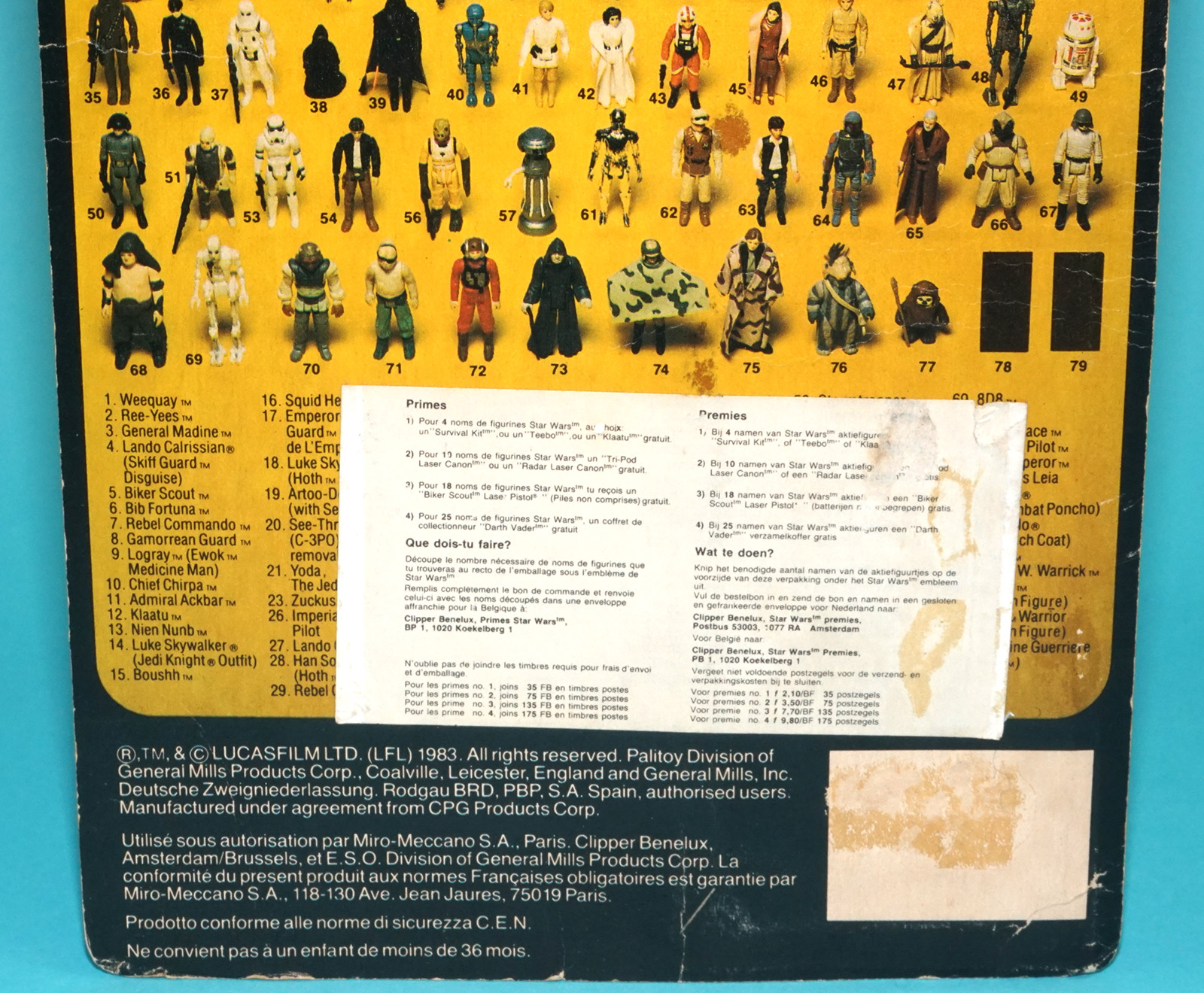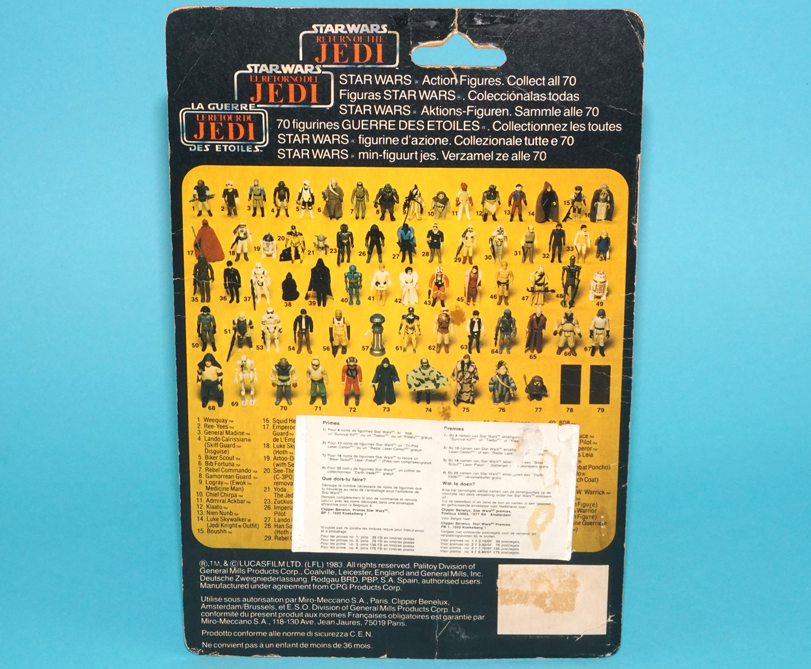 STAR WARS TRI-LOGO ANAKIN SKYWALKER MOC TAPE RESEAL 65-BACK EURO POTF ROTJ CARD 1984 KENNER PALITOY CLIPPER
