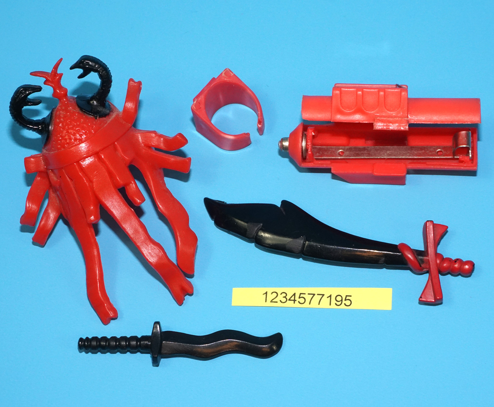 Arm function and light-up eyes work fine. Damaged sword handle. See close ups for details. Overall very good.
