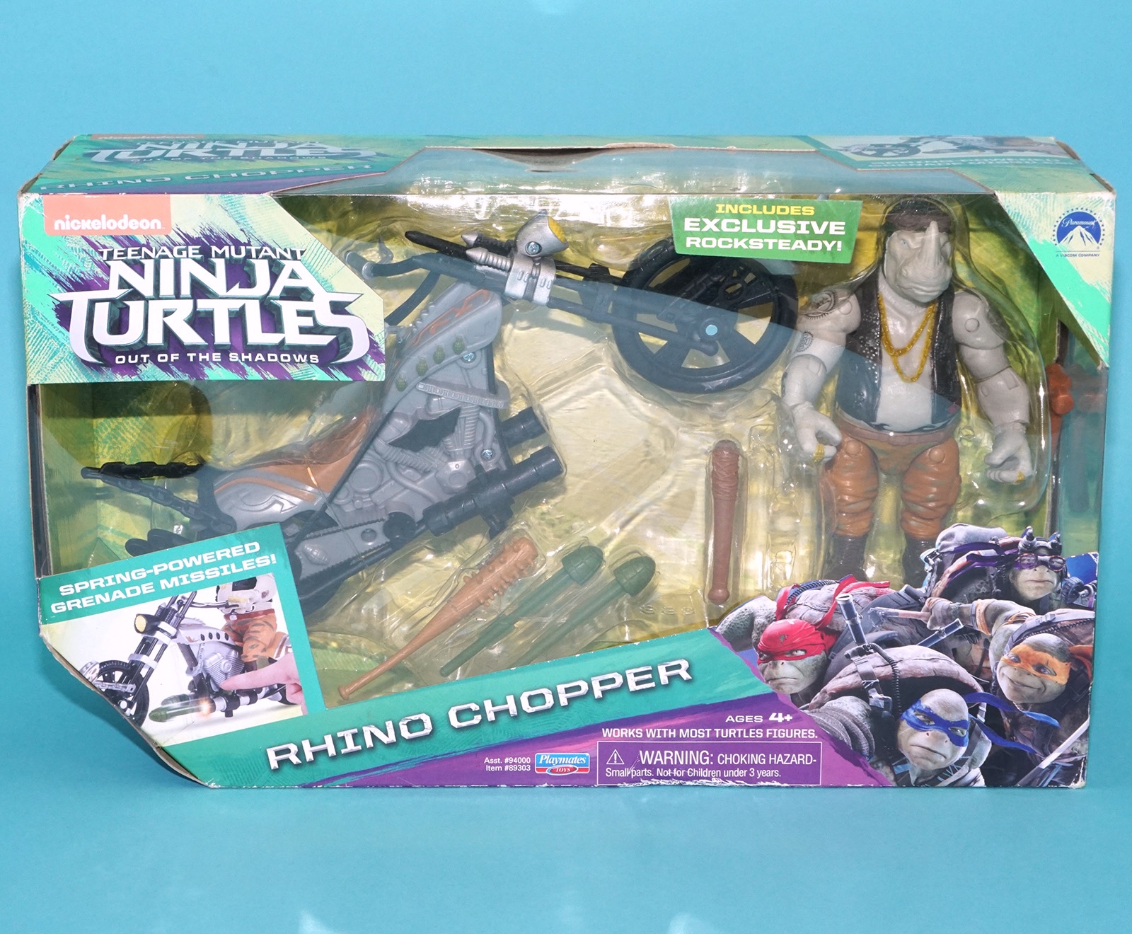 TMNT NICKELODEON OUT OF SHADOWS TEENAGE MUTANT NINJA TURTLES RHINO CHOPPER & ROCKSTEADY MIB NRFB EURO BOX 2016 PLAYMATES