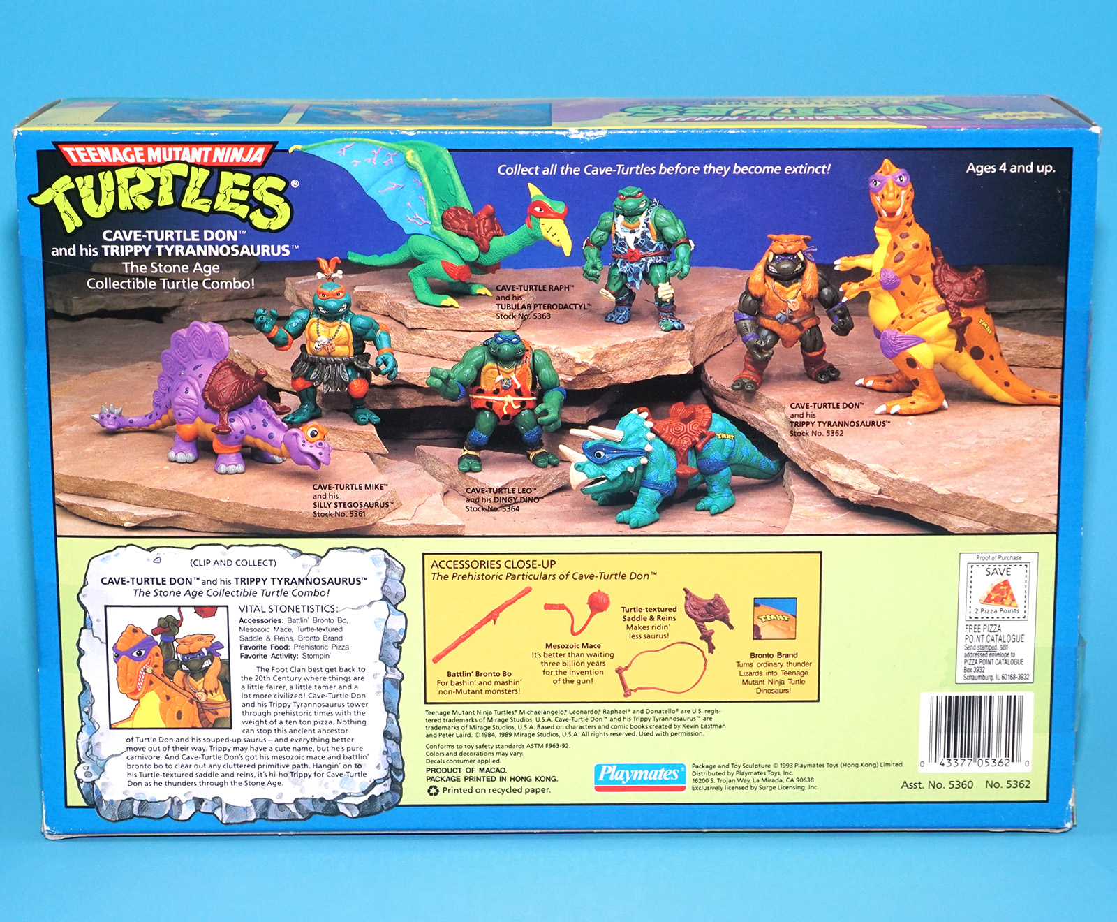 TMNT TEENAGE MUTANT NINJA TURTLES CAVE-TURTLE DON & TRIPPY TYRANNOSAURUS MIB MISB SEALED US BOX 1993 PLAYMATES