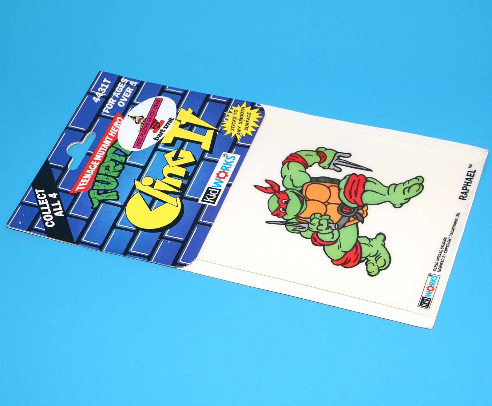 TMNT TEENAGE MUTANT NINJA TURTLES CLING IT WINDOW STICKER RAPHAEL MOC MOSC EURO HERO CARD 1990 KIDWORKS