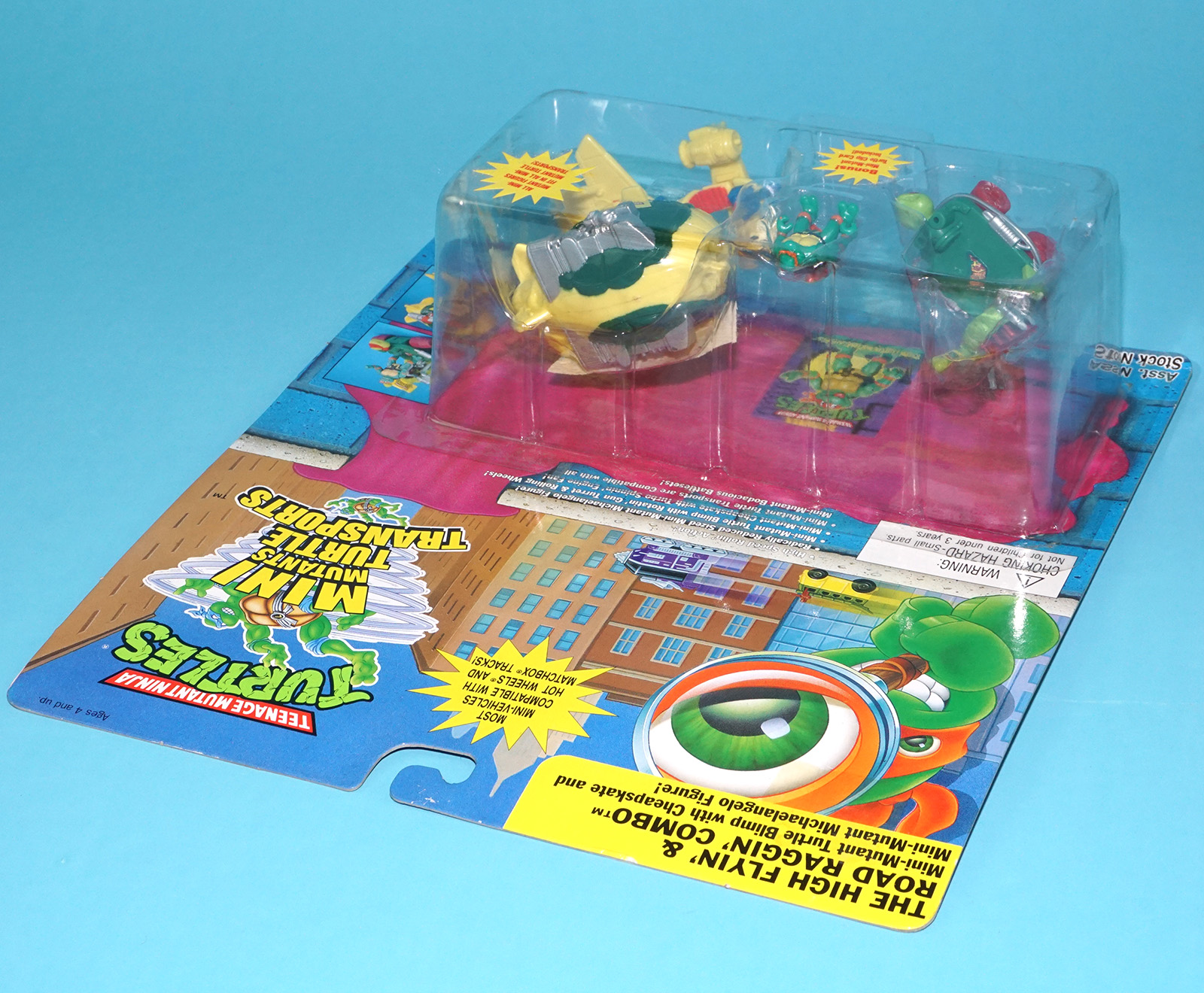 TMNT TEENAGE MUTANT NINJA TURTLES MINI TRANSPORT HIGH FLYIN’ & ROAD RAGGIN’ COMBO MOC MOSC 1995 PLAYMATES