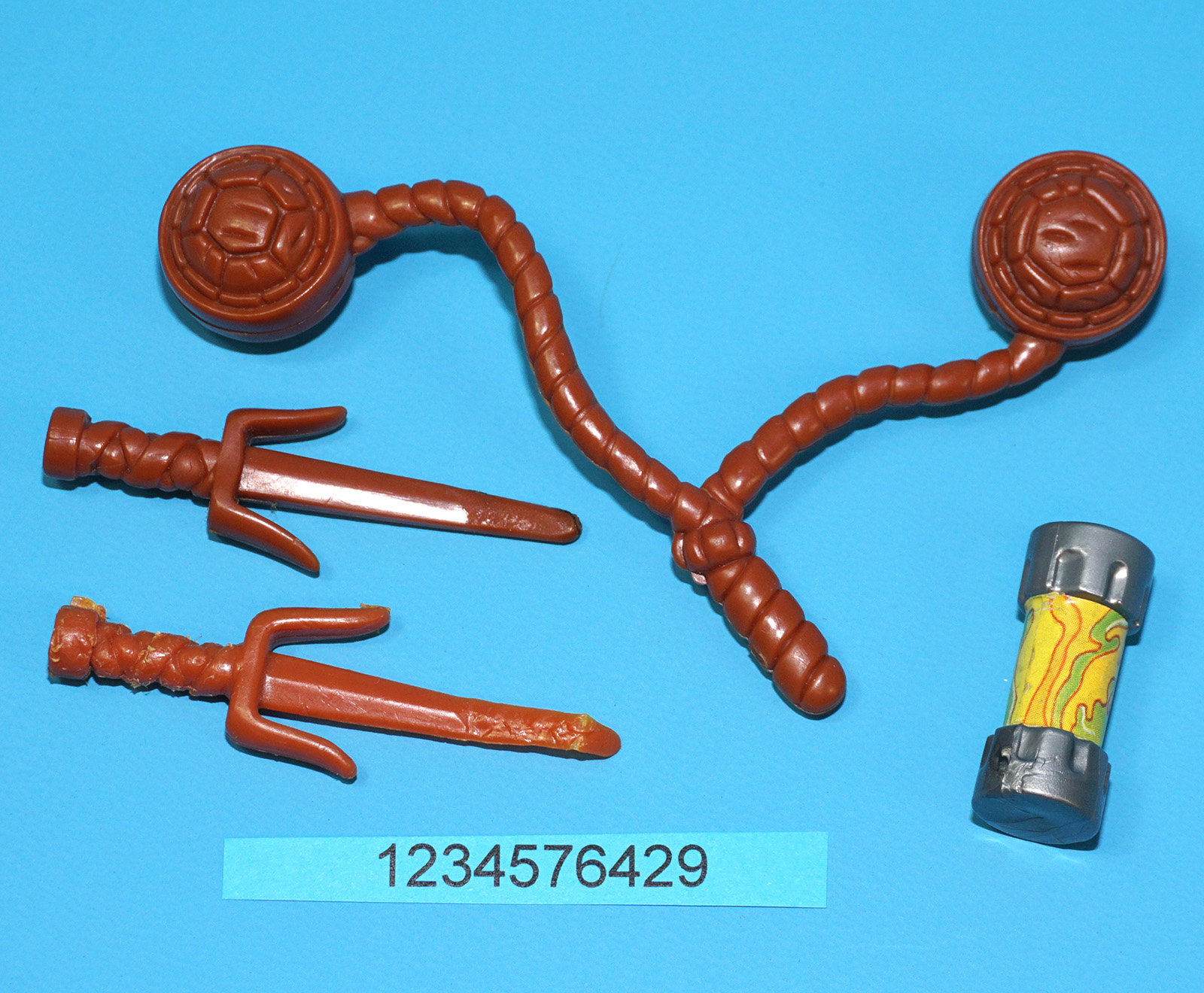 Missing ninja stars. One regular 1988 Raph sai (with stressmarks). Otherwise very good.