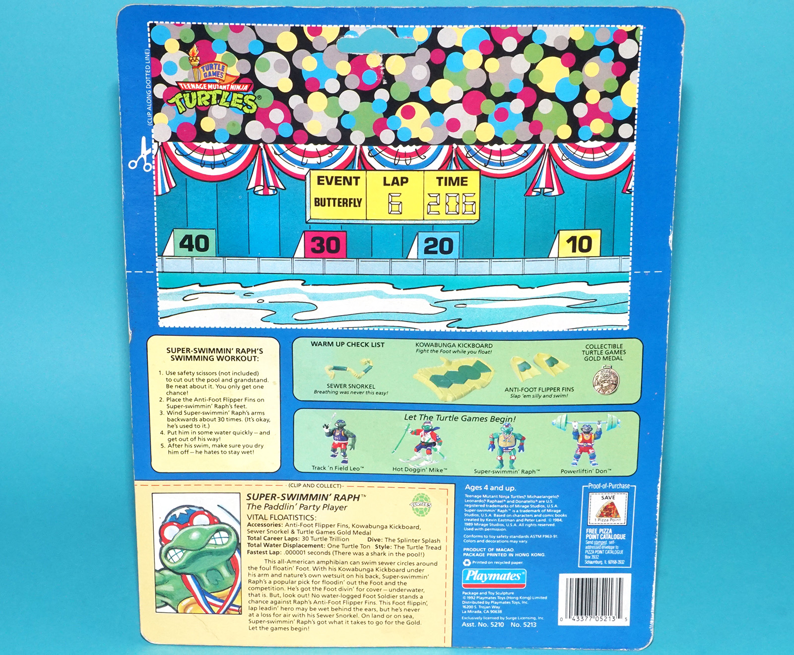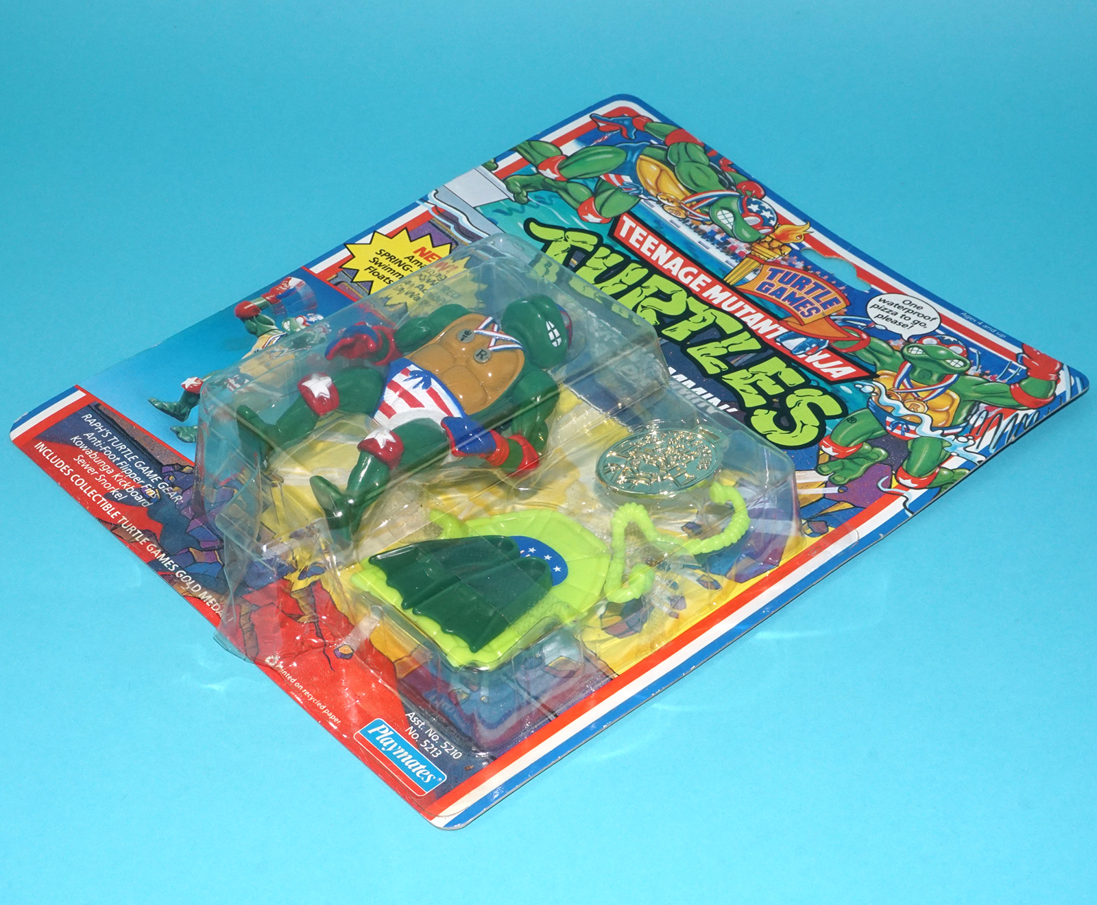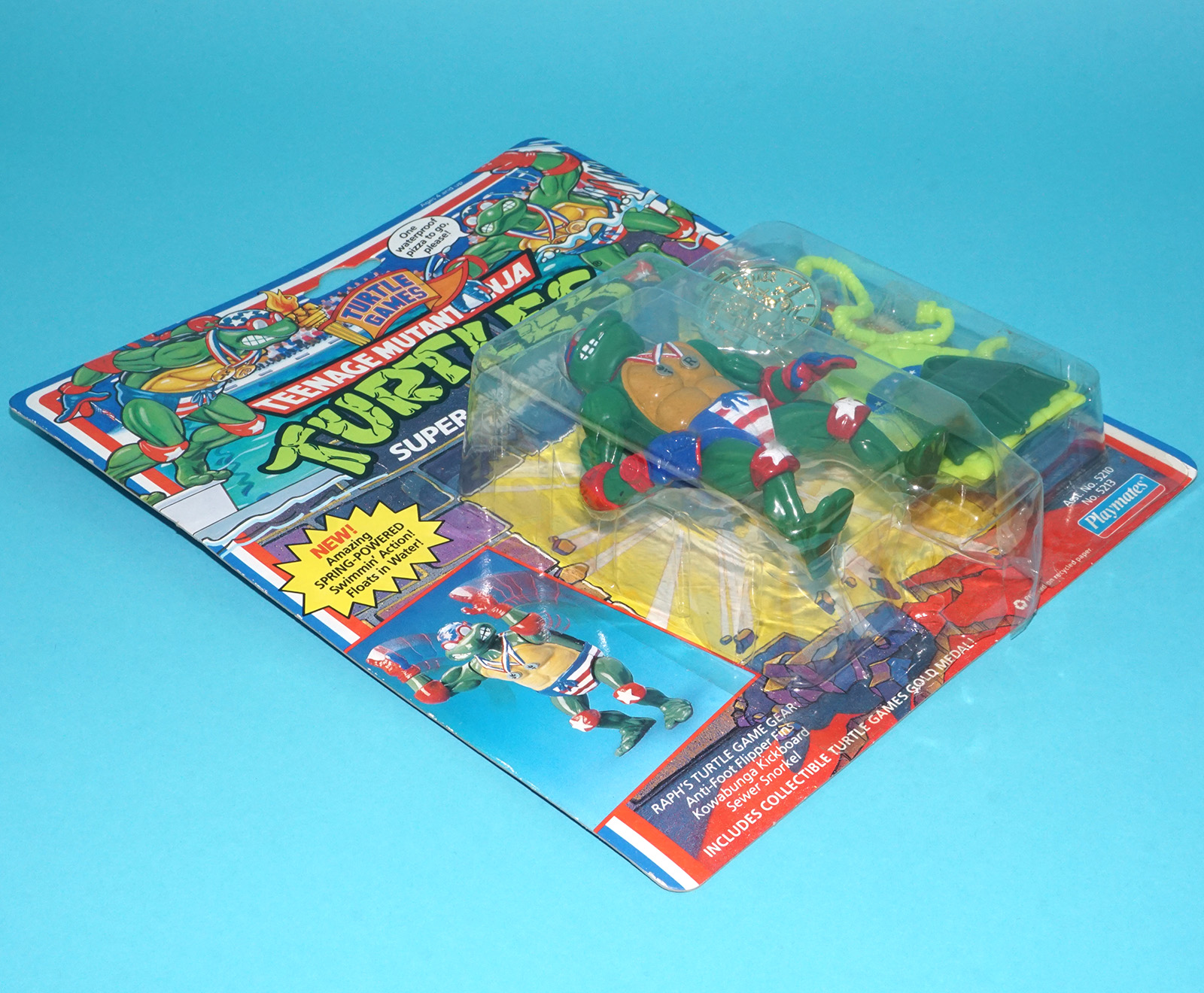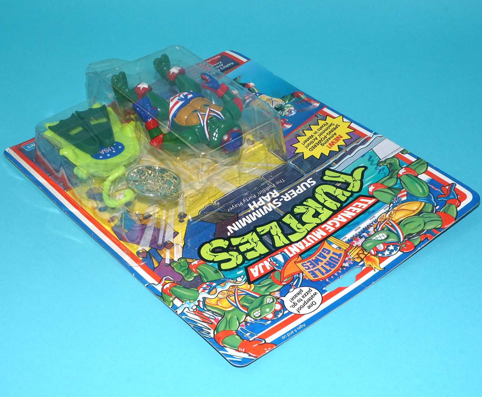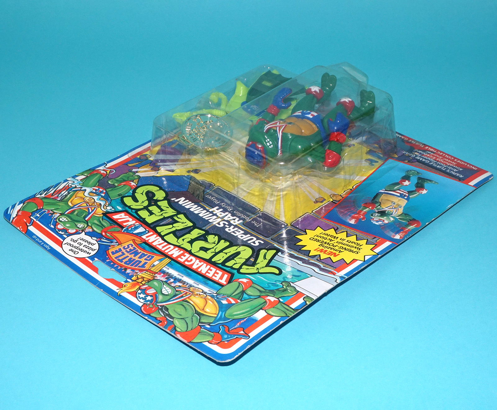 TMNT TEENAGE MUTANT NINJA TURTLES TURTLE GAMES SUPER-SWIMMIN’ RAPH MOC MOSC SEALED CARD 1992 PLAYMATES