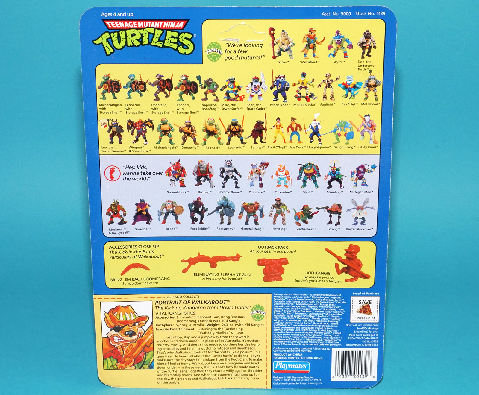 TMNT TEENAGE MUTANT NINJA TURTLES WALKABOUT MOC MOSC SEALED CARD 1991 PLAYMATES