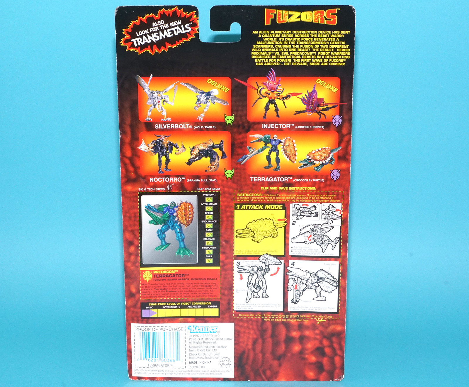 TRANSFORMERS BEAST WARS CARDBACK UNCUT FILE CARD BASIC CLASS TERRAGATOR FUZORS 1999 HASBRO