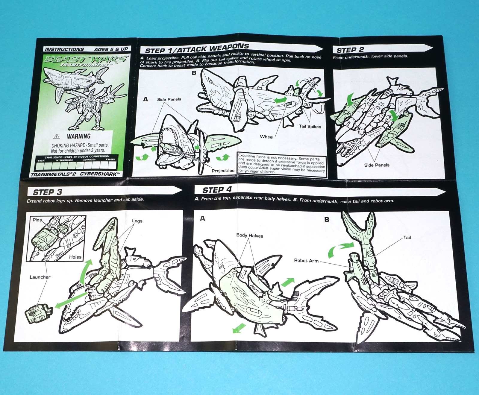 TRANSFORMERS BEAST WARS ORIGINAL SPARE INSTRUCTIONS MEGA CLASS CYBERSHARK TRANSMETALS 2 1999 HASBRO