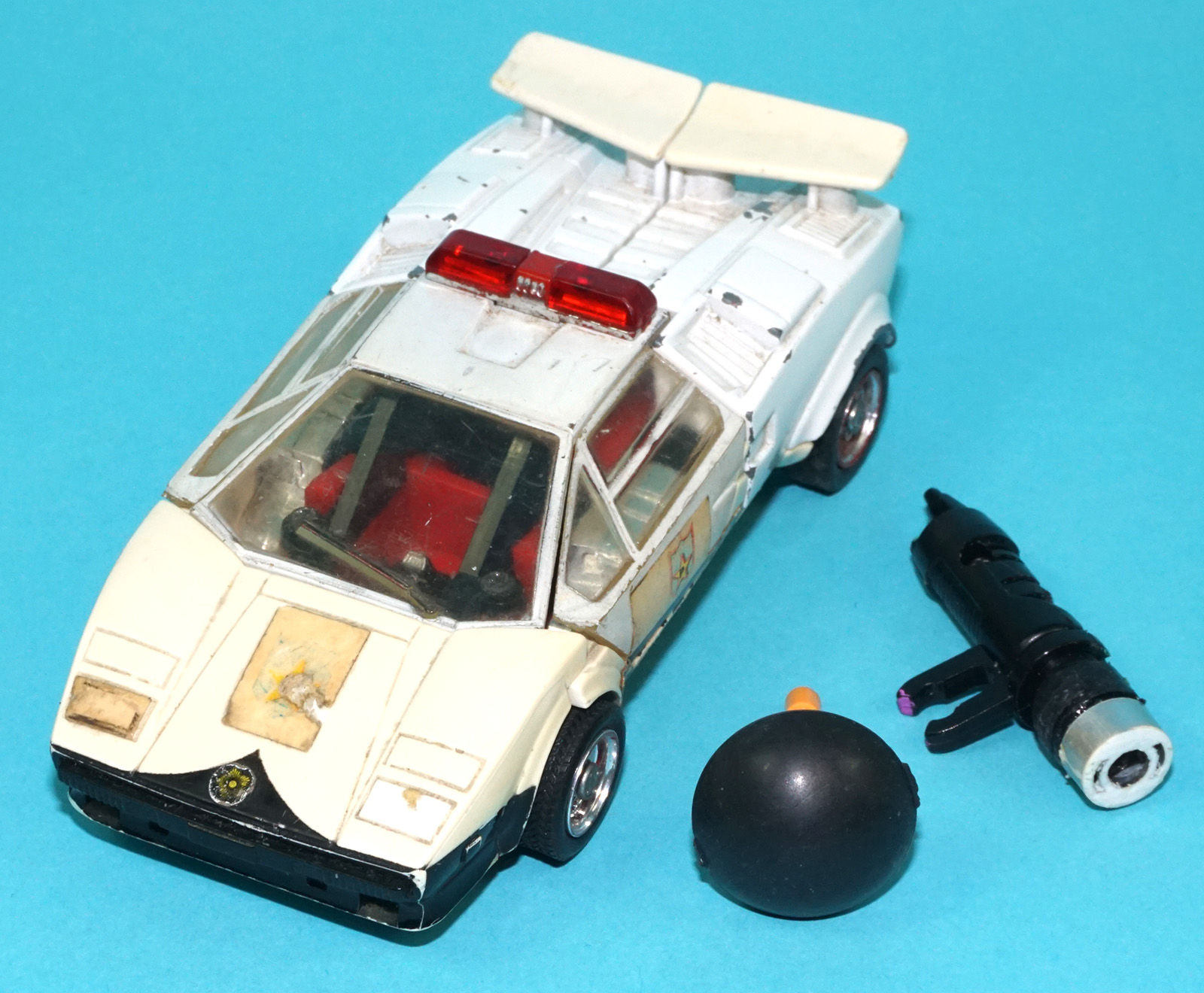 TRANSFORMERS DIACLONE CAR ROBO NEW COUNTACH LP500S POLICEW G1 RED ALERT NEAR COMPLETE 1982 TAKARA TRASFORMER