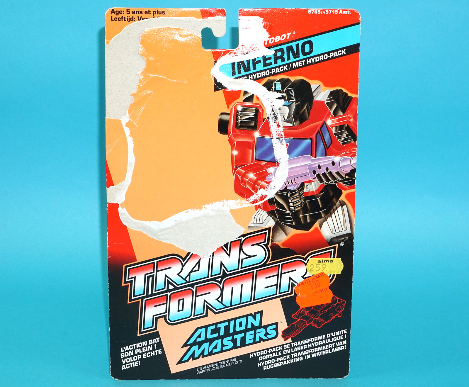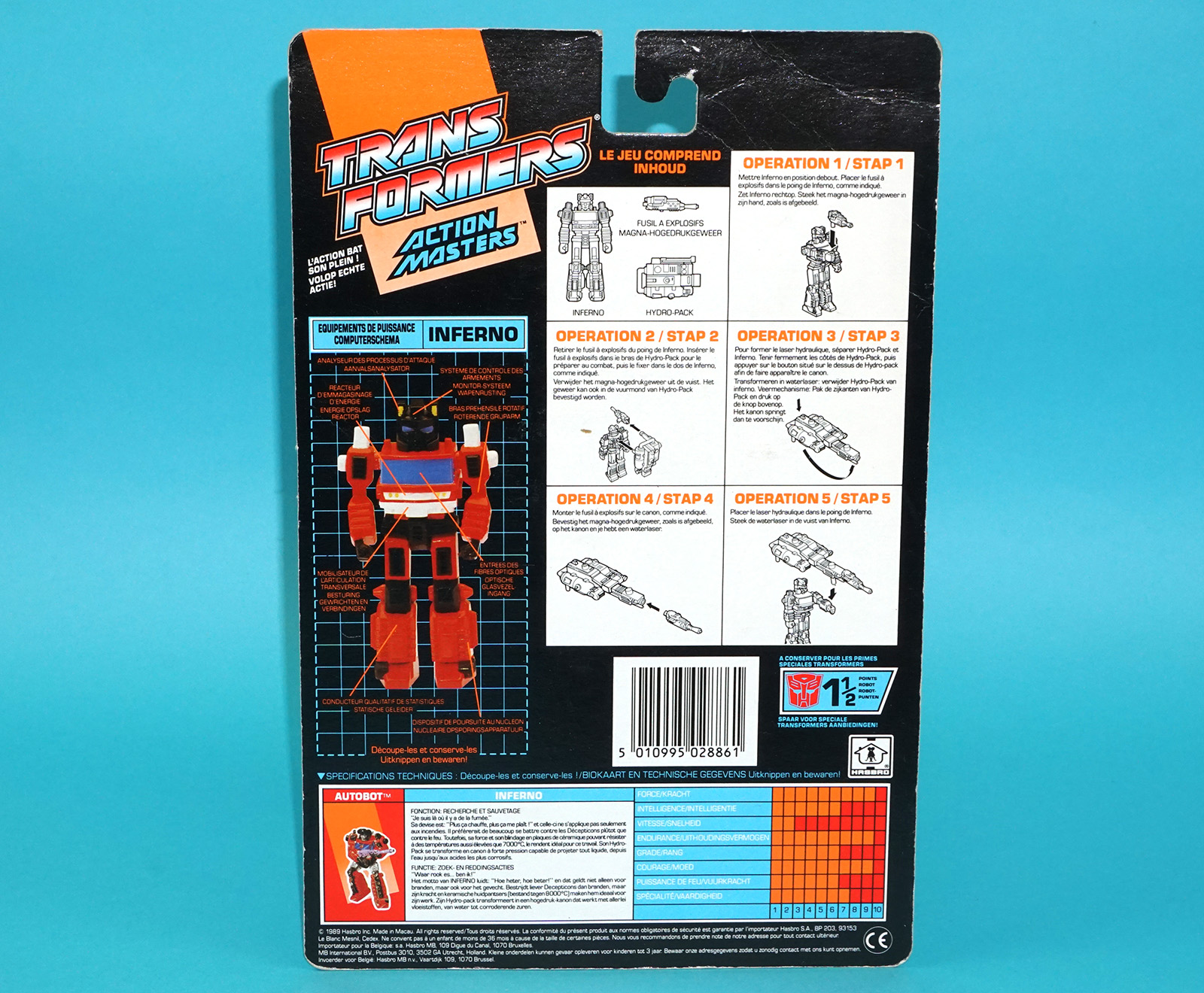 TRANSFORMERS G1 ACTION MASTERS INFERNO TECH SPECS CARDBACK NL FR BENELUX EURO 1990 HASBRO