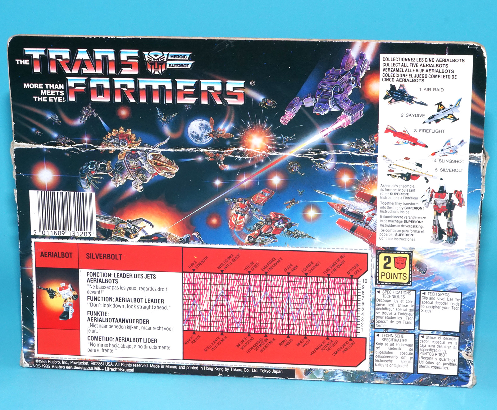 TRANSFORMERS G1 AERIALBOT LEADER SILVERBOLT ORIGINAL EMPTY EURO BOX 1985 HASBRO