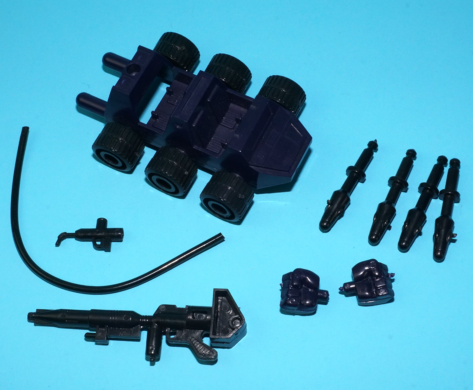 100% complete. Regular yellow eyes ‘no coo’ Optimus. Correct original fists, gun, hose and nozzle. Not sure about the missiles and the gas pump (as they could be regular hasbro release).