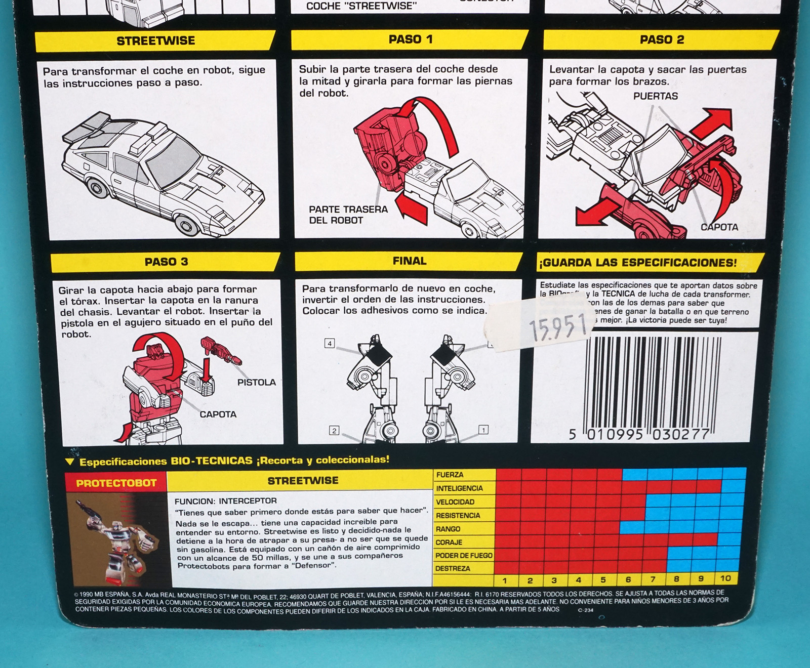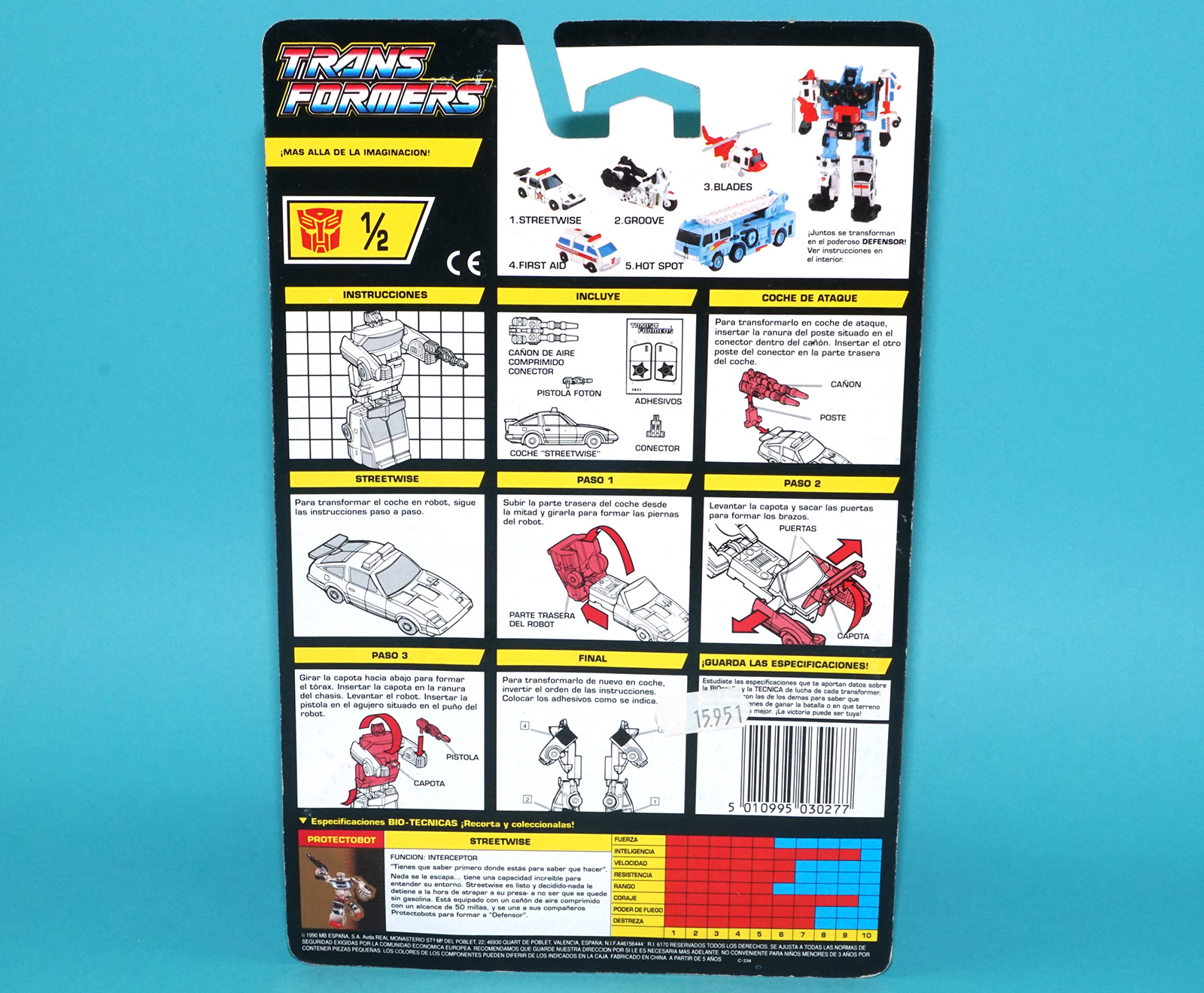TRANSFORMERS G1 CLASSICS PROTECTOBOTS STREETWISE MOC MOSC EURO SPANISH CARD 1990 HASBRO INTERNATIONAL SPAIN