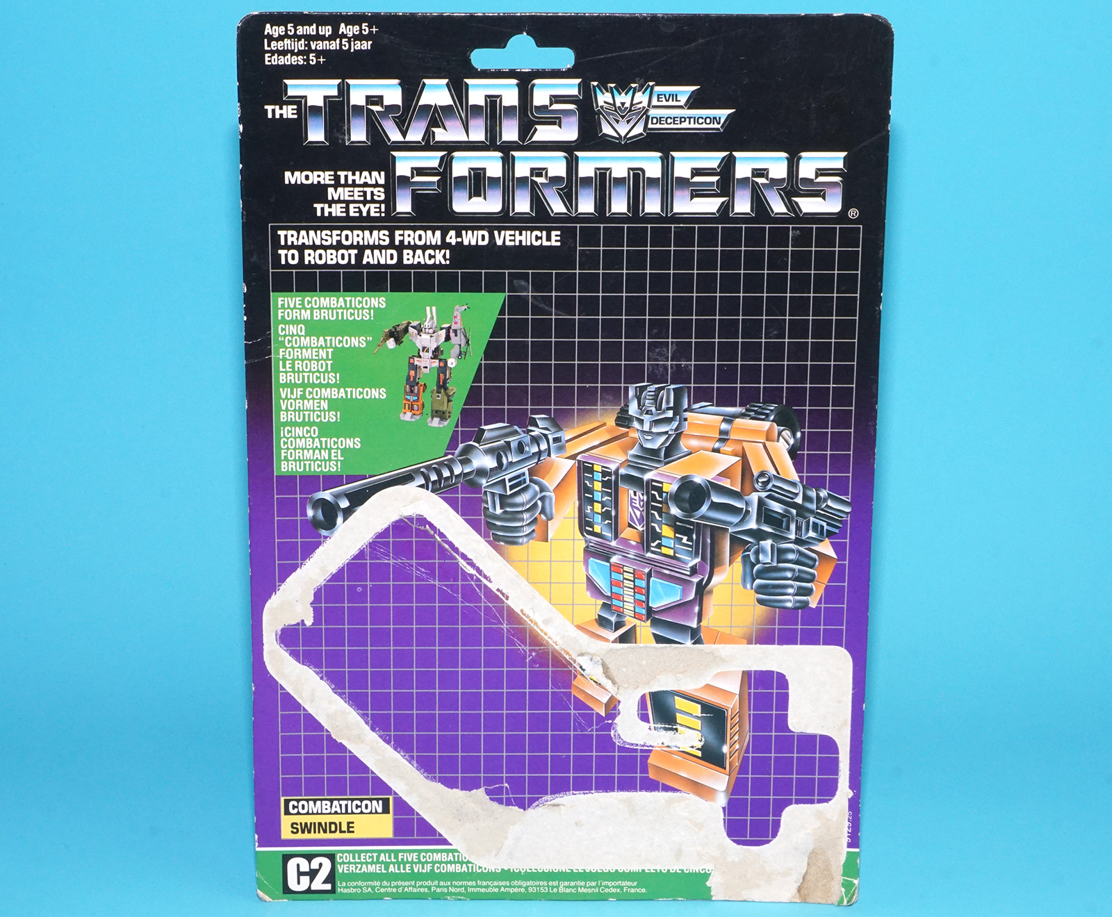 TRANSFORMERS G1 COMBATICON SWINDLE TECH SPECS CARDBACK EURO 1985 HASBRO