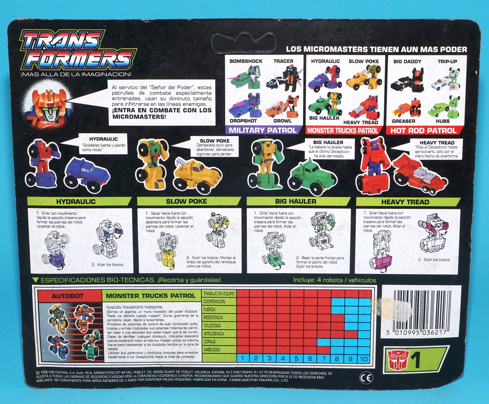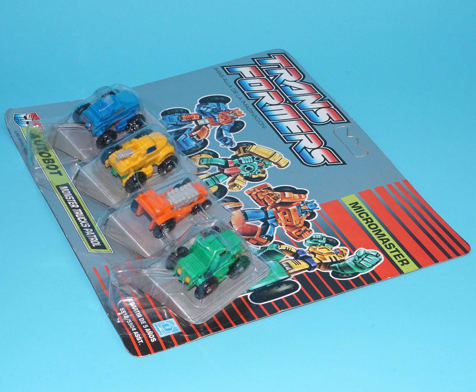 TRANSFORMERS G1 MICROMASTER MONSTER TRUCKS PATROL MOC MOSC EURO SPANISH CARD 1990 HASBRO MB TOYS