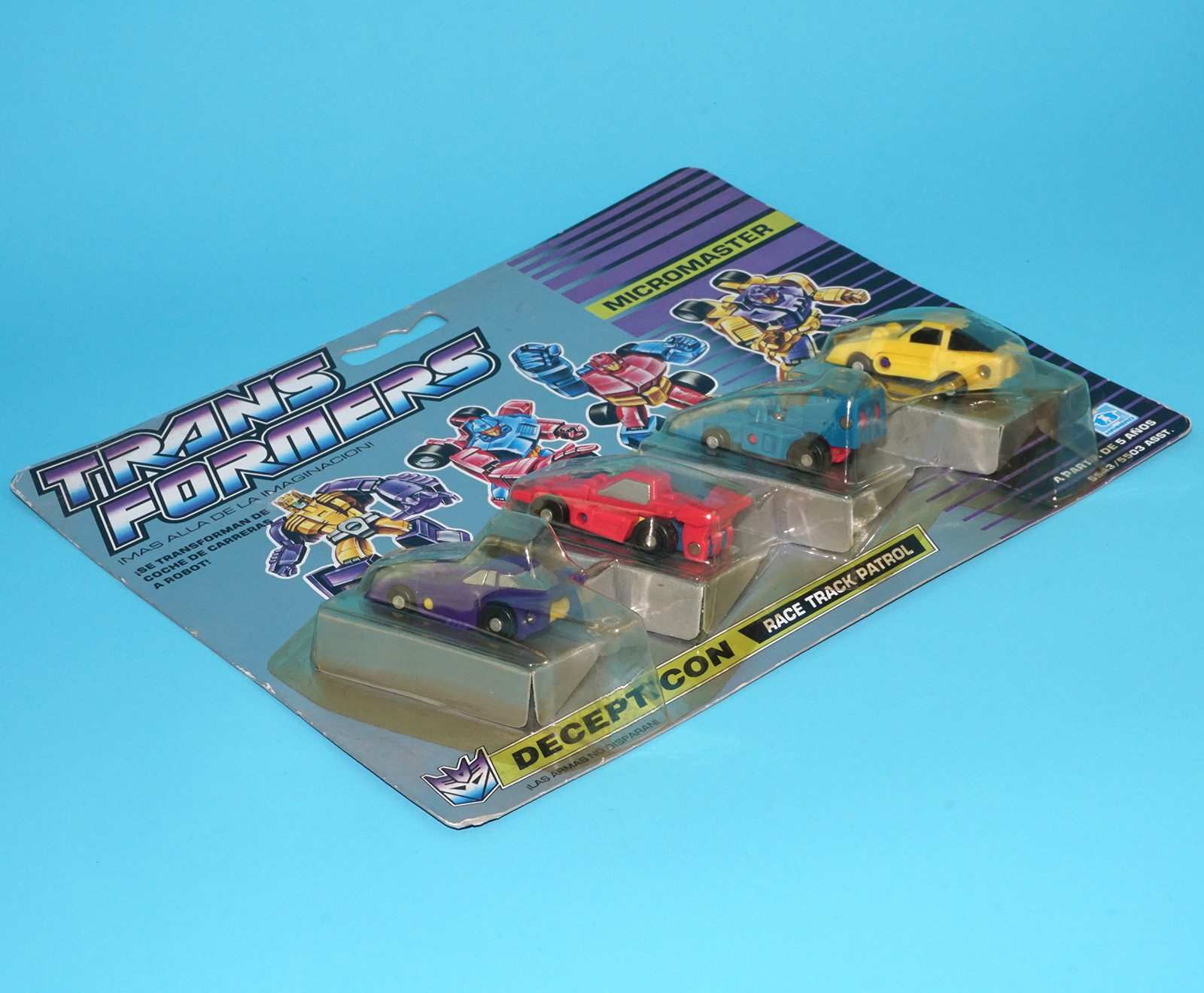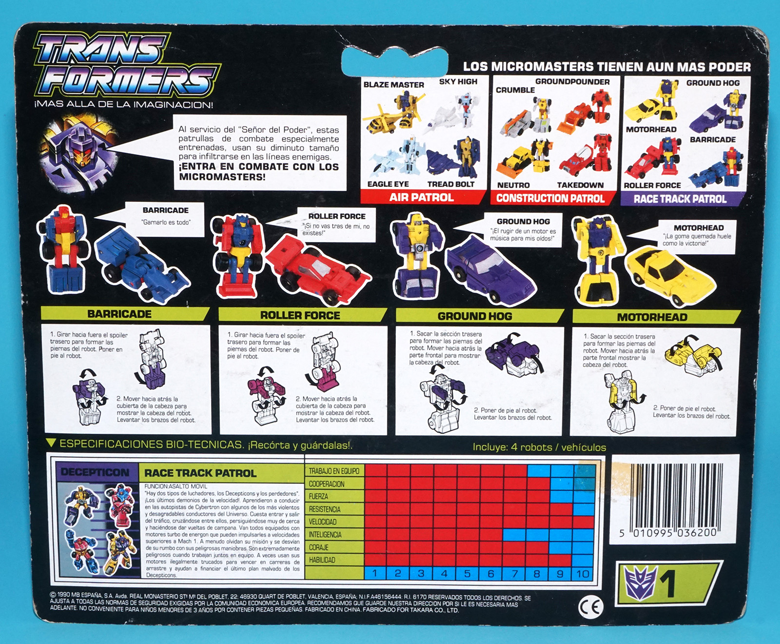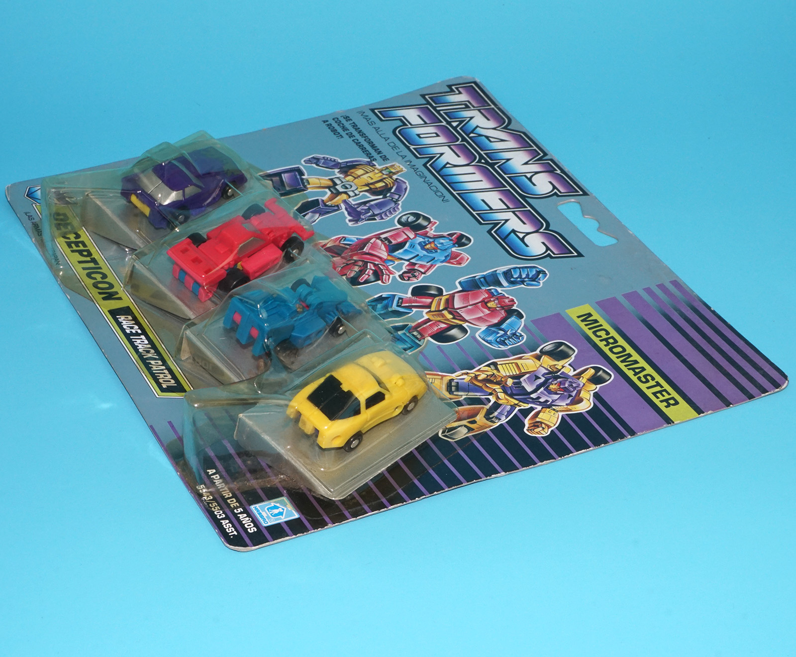 TRANSFORMERS G1 MICROMASTER RACE TRACK PATROL MOC MOSC EURO SPANISH CARD 1990 HASBRO MB TOYS