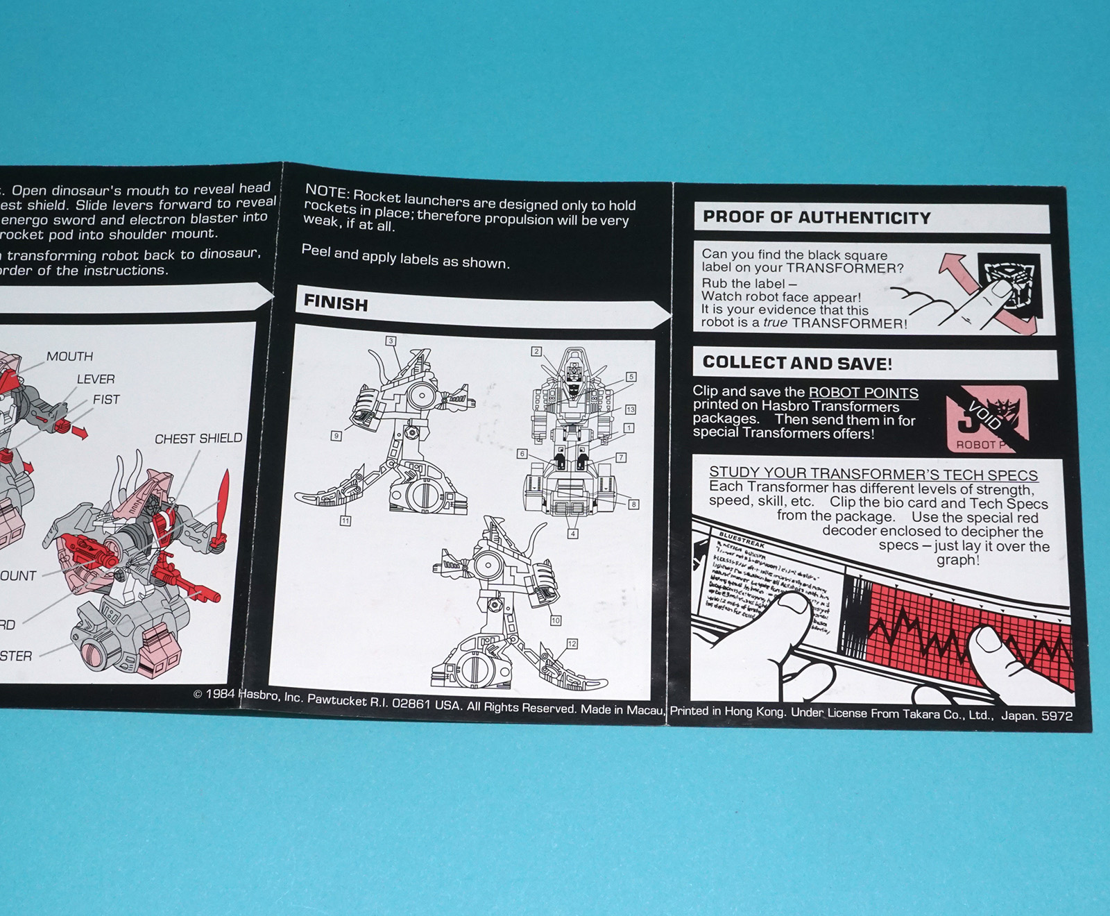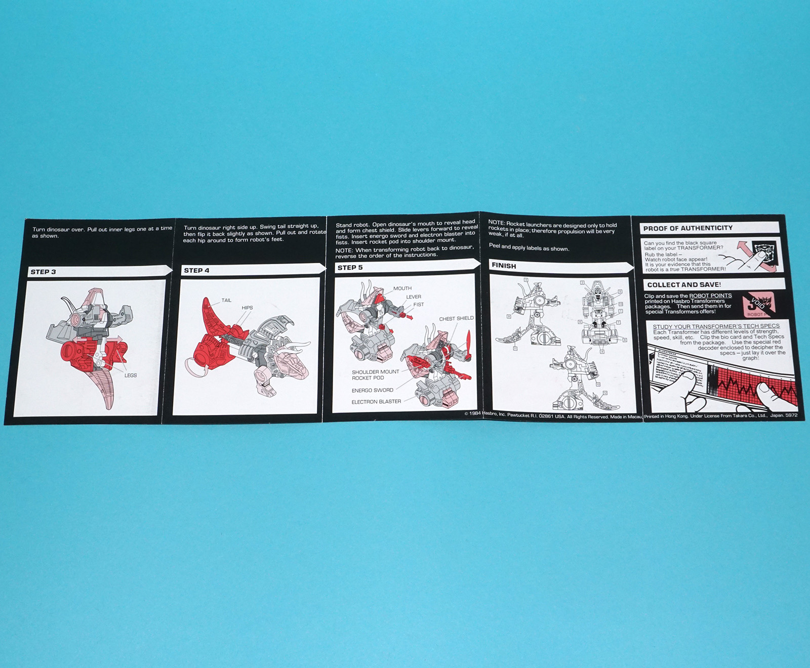 TRANSFORMERS G1 ORIGINAL SPARE INSTRUCTIONS DINOBOT SLAG US USA 1984 HASBRO